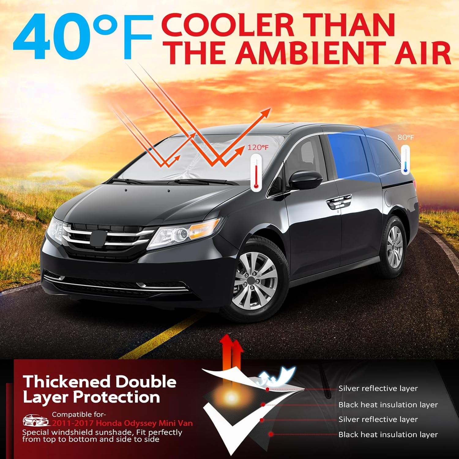 - KAYZT windshield sun shade is precise custom fit for 2011 2012 2013 2014 2015 2016 2017 Honda Odyssey Mini Van, Thoroughly covers every corner of the windshield, Tailored to accommodate rear view mirror, Ensuring a seamless and snug fit without obstruction, Must have car accessories for Odyssey