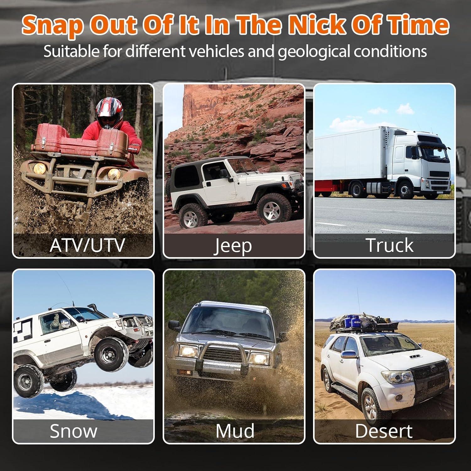 - Premium Material & Higher Elastic Elongation: Crafted from 100% nylon 66 for extended durability.12-strand high-strength torque-balanced nylon inner core provides exceptional resilience and wear resistance, outlasting 8-strand recovery tow ropes. Up to 30%-35% stretch capacity, the ideal choice for safest and smoothest vehicle recovery from mud, sand, or snow, offering impact-free towing that leaves your vehicle unscathed