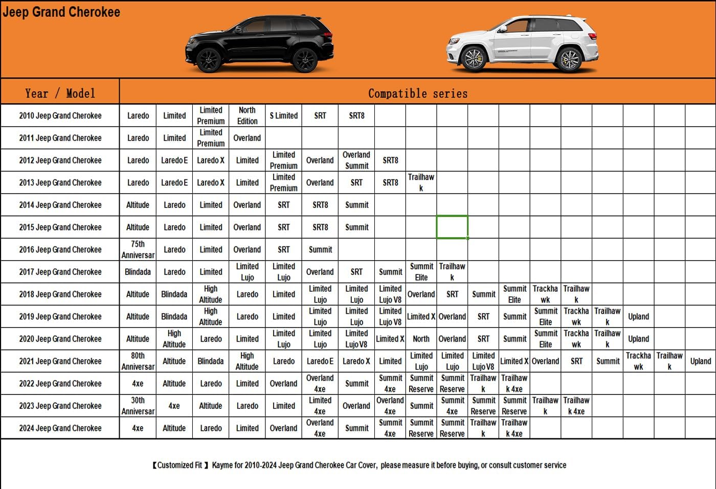 - 【Suitable for】— Custom fit for Jeep Grand Cherokee (2010-2025). Come with a large enough portable bag to store your cover when you do not use