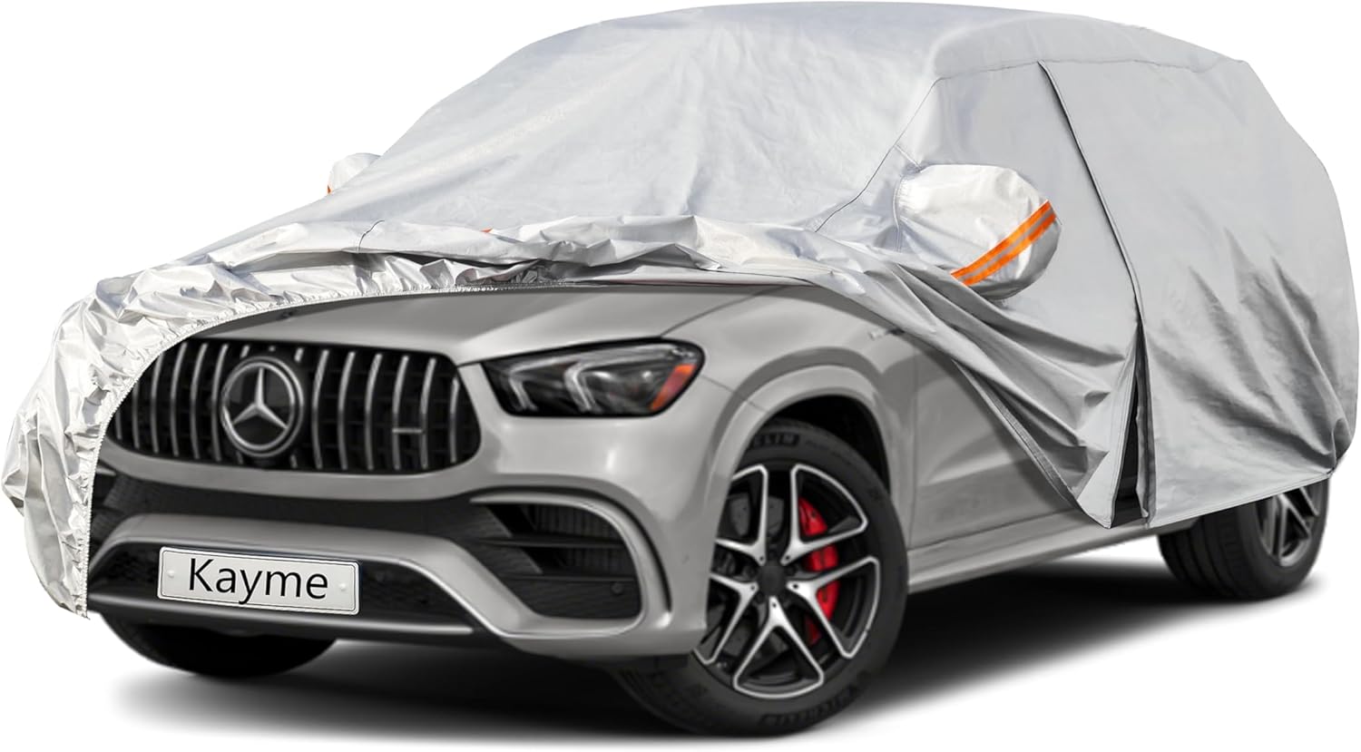 Kayme 6 Layers SUV Car Cover Custom Fit for Mercedes Benz GLE 350 450 (2015-2025) Waterproof All Weather for Automobiles, Outdoor Full Cover Rain Sun UV Protection.Silver