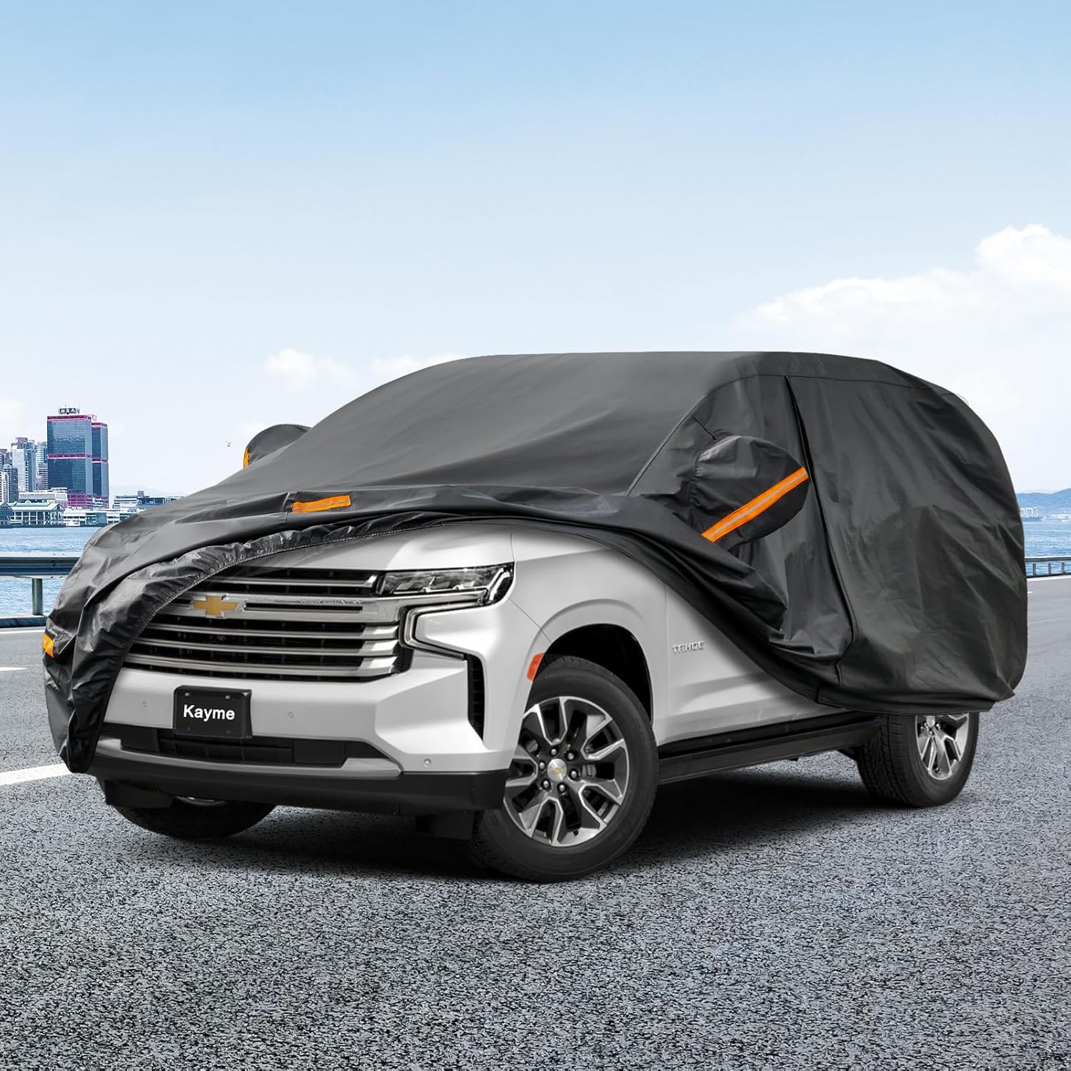 Kayme 7 Layers SUV Car Cover Custom Fit for Chevrolet Chevy Tahoe (2007-2025) Waterproof All Weather for Automobiles, Outdoor Full Cover Rain Sun UV Protection.