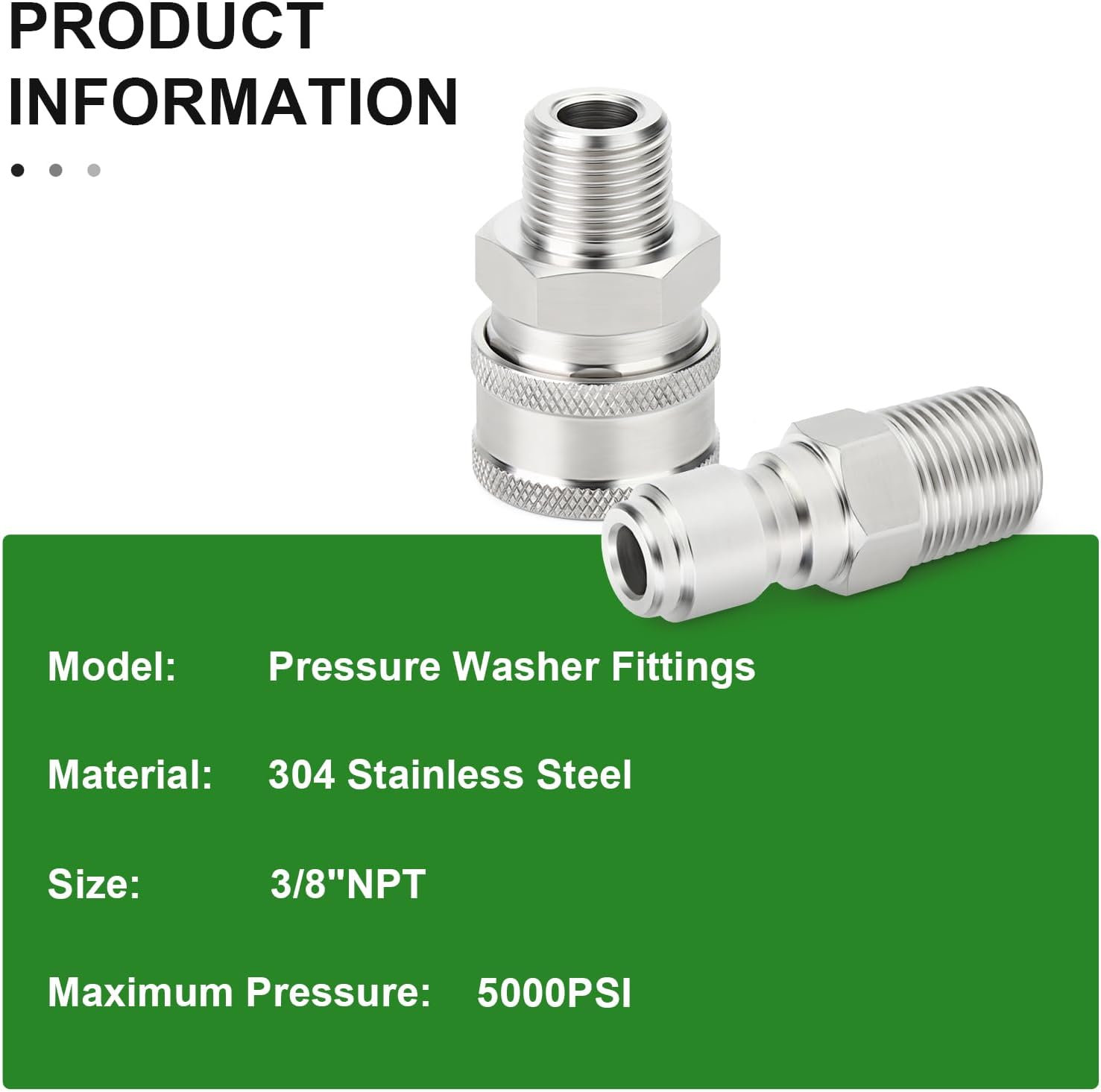 TAISHER 4PCS 304 Stainless Steel Pressure Washer Adapter Kit, Quick Connect Fittings,3/8" Male