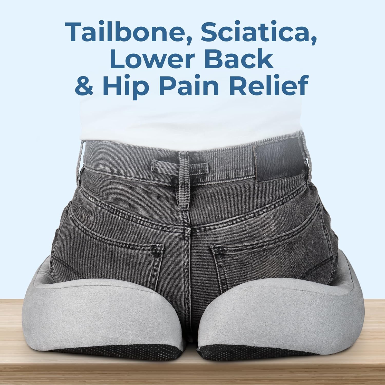 - 𝗖𝗹𝗼𝘂𝗱-𝗹𝗶𝗸𝗲 𝗖𝗼𝗺𝗳𝗼𝗿𝘁 & 𝗣𝗿𝗲𝘀𝘀𝘂𝗿𝗲 𝗥𝗲𝗹𝗶𝗲𝗳 𝗖𝘂𝘀𝗵𝗶𝗼𝗻: Distributes your weight evenly. Takes the pressure off your tailbone. Alleviates lower back, coccyx, sciatica, lumbar, and pelvic pain