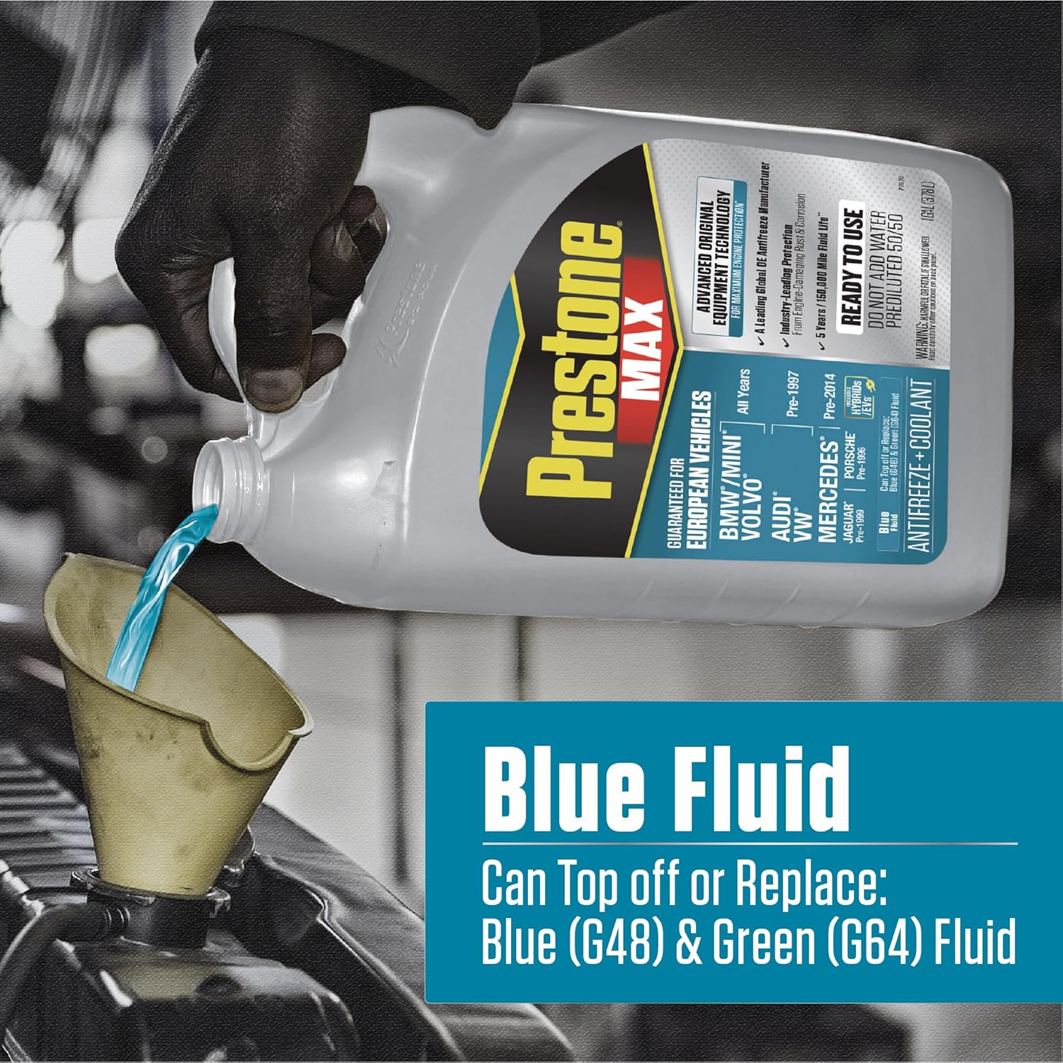 - Can top off or replace any Blue (G48) or Green (G64) antifreeze + coolant in all BMWs; all Minis; all Volvos; Mercedes pre-2014; Volkswagen pre-1997; Audi pre-1997; Jaguar pre-1999 and Porsche pre-1996