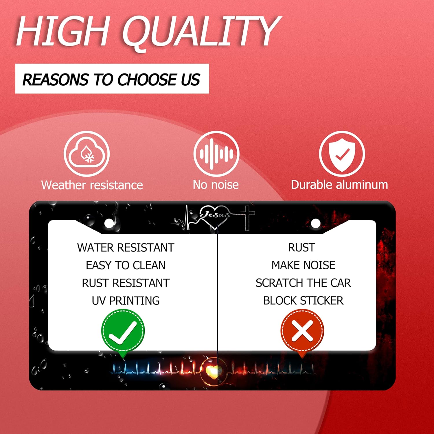 Jesus Heart Rate line License Plate Frame Christian Religious License Plate Frames Stainless Steel Accessories Cars Decor with 2 Holes and Screws Fits Standard US CA Vehicles Size 12.2 x 6 Inches