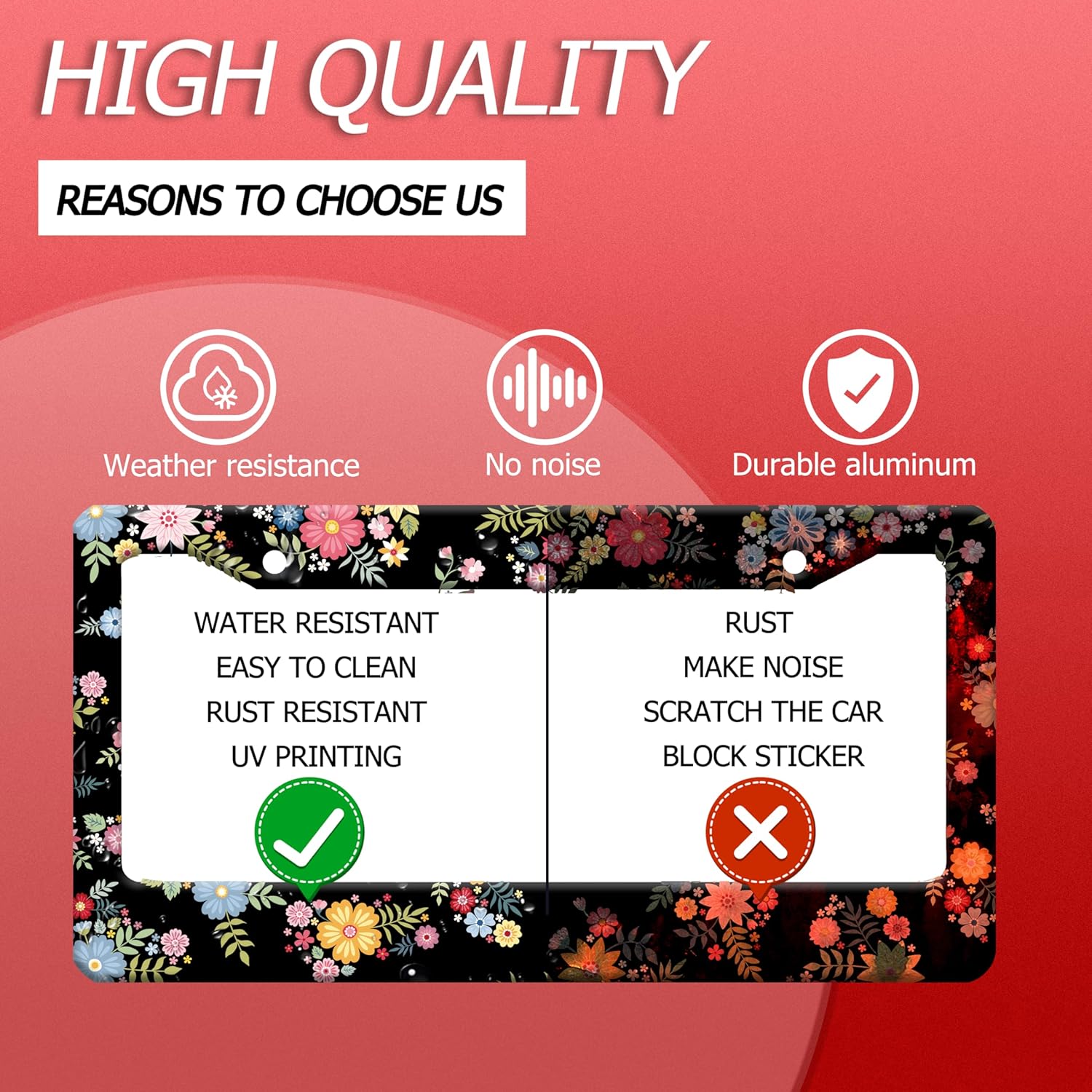 Colorful Flowers License Plate Frame Beautiful Floral License Plate Frames Stainless Steel Accessories Cars Decor with 2 Holes and Screws Fits Standard US CA Vehicles Size 12.2 x 6 Inches