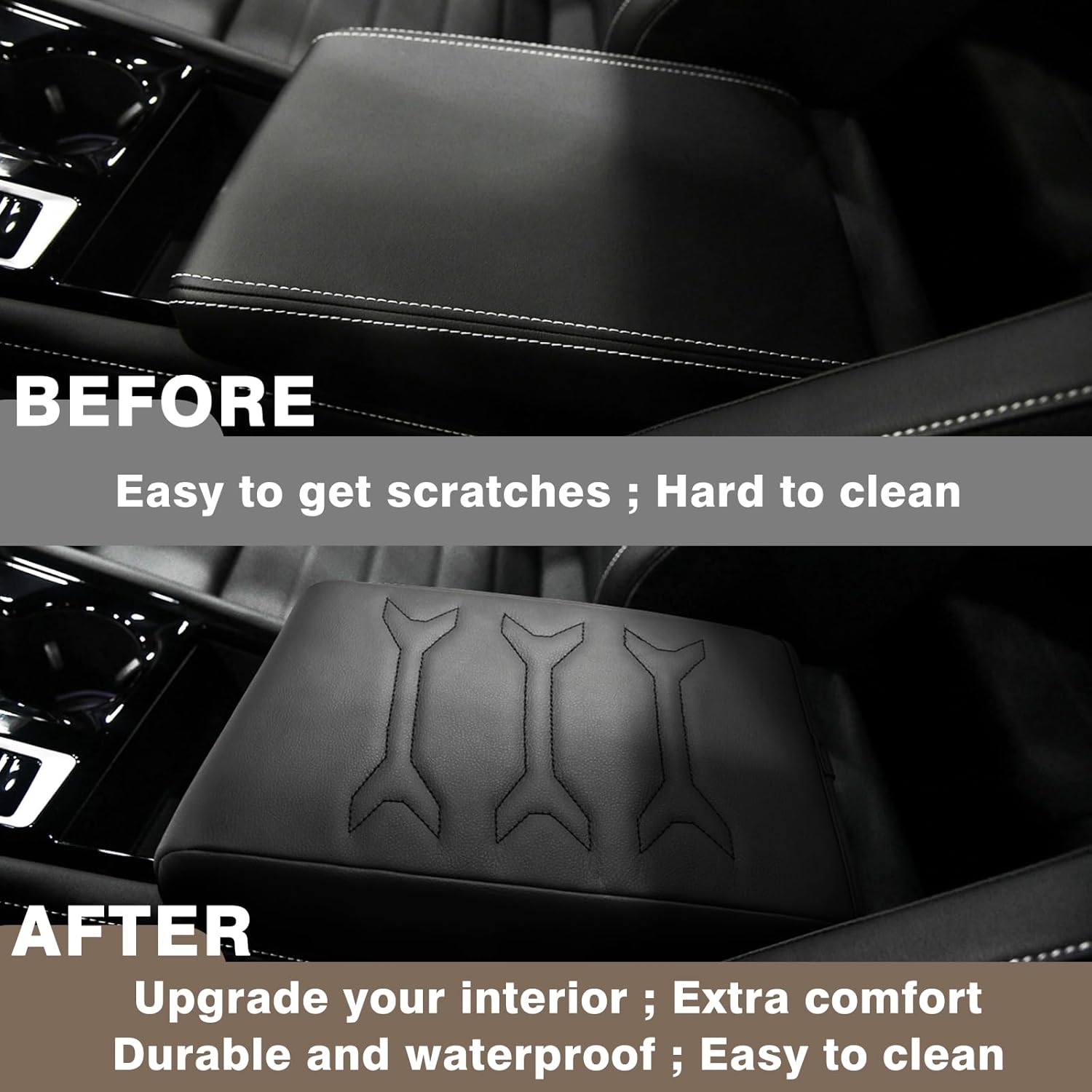 - Unique Design: Designed according to the OEM seat texture to make it match your interior perfectly and even better. Our armrest cover is crafted with high-quality Vegan Leather and an extra layer of foam, which is skin-friendly, breathable and soft.