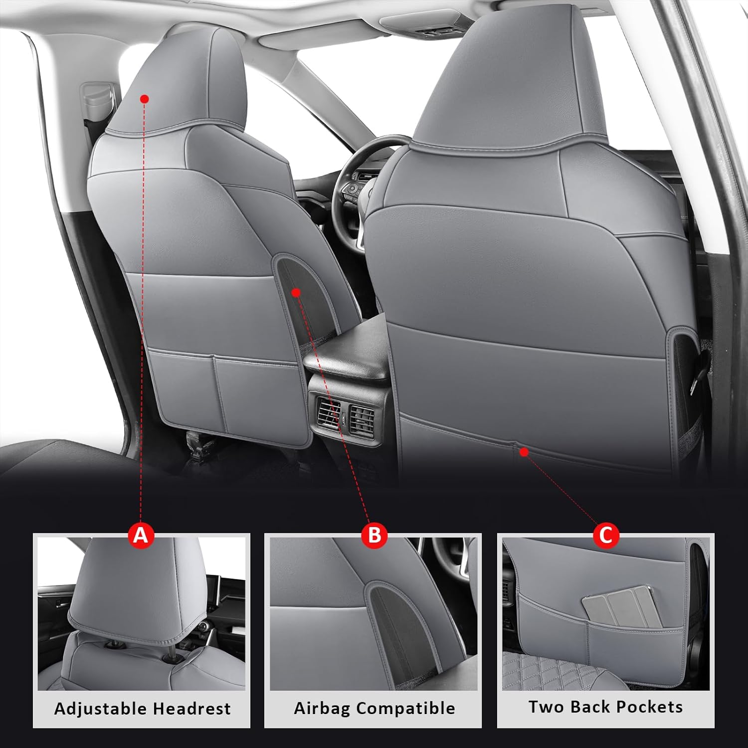 - 【Airbag-Safe & Functional】Seat cover for toyota rav4 Engineered with precision-cut perforations for side airbag deployment. Driver-side includes bonus storage pocket for phones/tolls – because convenience shouldn't compromise safety. Our rav4 seat cover has been upgraded to a detachable, and the side straps for fixing are almost hidden. The airbag has enough room to stretch and will never be blocked.