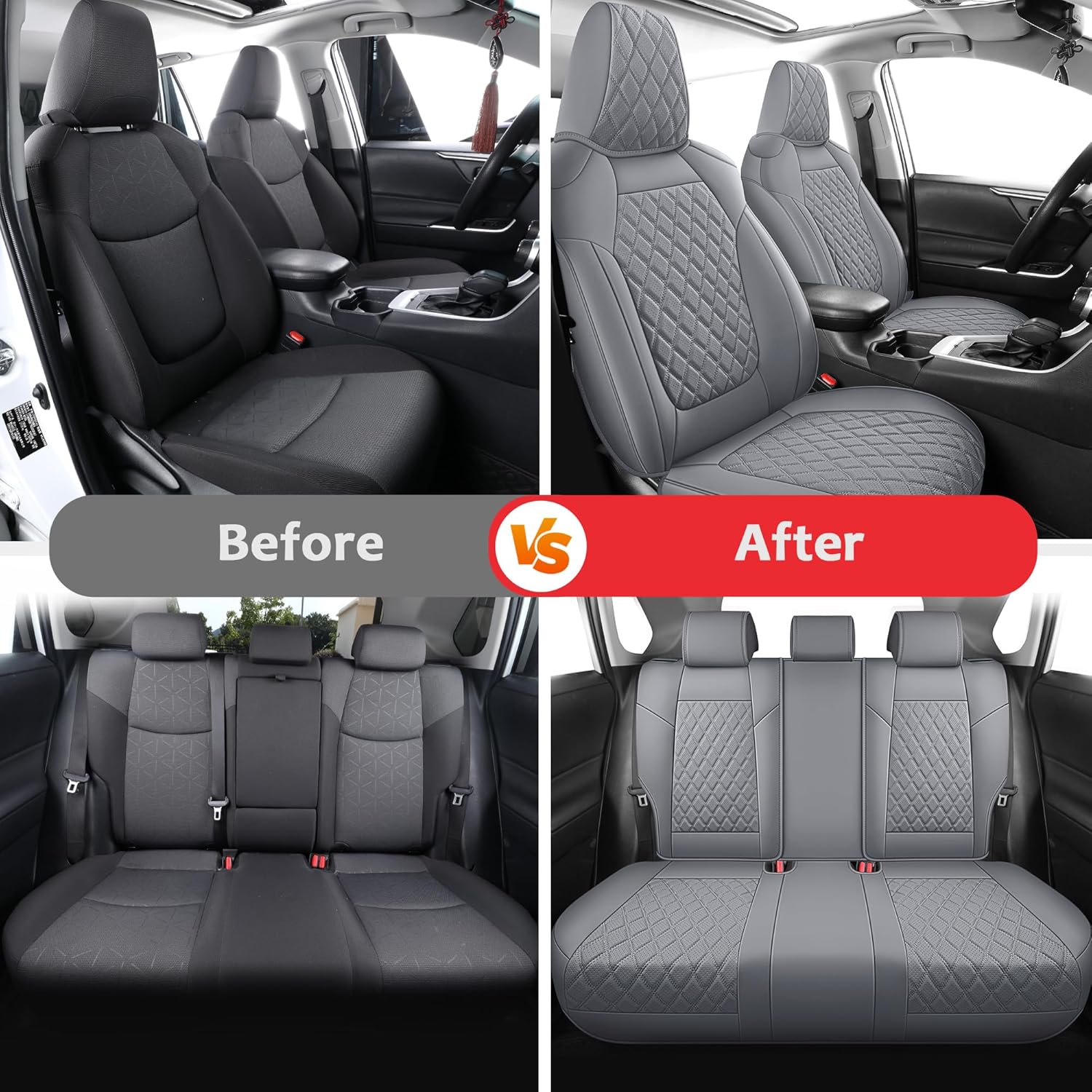 - 【Luxury 3D Stitching】 Elevate your cabin with sophisticated diamond-quilted upholstery that outshines factory seats. Our Toyota Rav4 Seat Covers feature full-wrap design with no exposed gaps. Hidden zippers reveal convenient backseat cup holders.