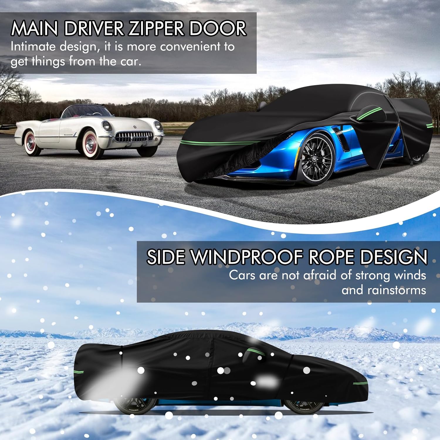 - 🚘【Premium Material】The car cover for Corvette C7 is made of heavy-duty 210D Oxford cloth and waterproof silver-plated fabric, and has multi-layer cotton coating, which can be windproof, dustproof, UV-proof, sun-proof, not easy to tear, and withstand water pressure up to 1600mm. The inner layer also has a thickened cotton backing, which not only fully prevents the paint from being scratched, but also has thermal insulation, which is warm in winter and cool in summer.