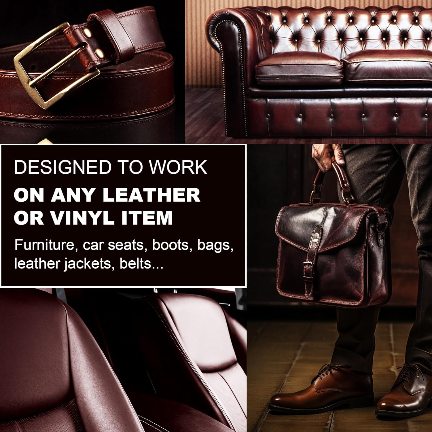 - Multipupose: Our Leather Couch Conditioner, leather and vinyl repair kit can be used on a variety of leather and vinyl items. Our leather restorer kit works well in protecting your Sofa, Furniture, Couches and Car upholstery, Wallets, Shoes and Boots, Saddles, Purses, Belts & Jackets, Armrests & Gloves.