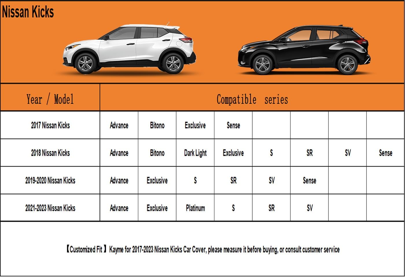 - 【Suitable for】— Custom fit for Nissan Kicks (2017-2025). Come with a large enough portable bag to store your cover when you do not use
