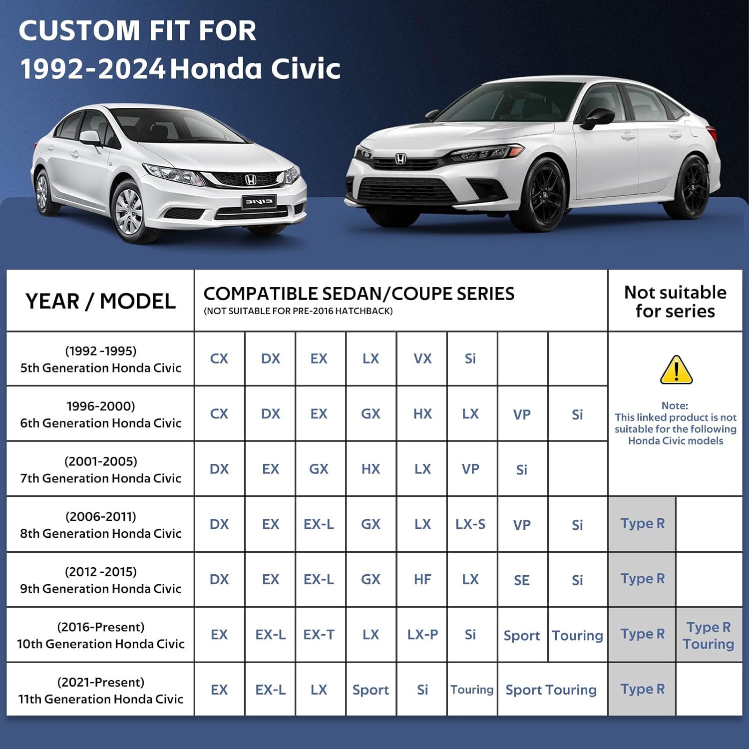 - Material Polyethylene : Vehicle Service Type Honda Civic (1991-2024)