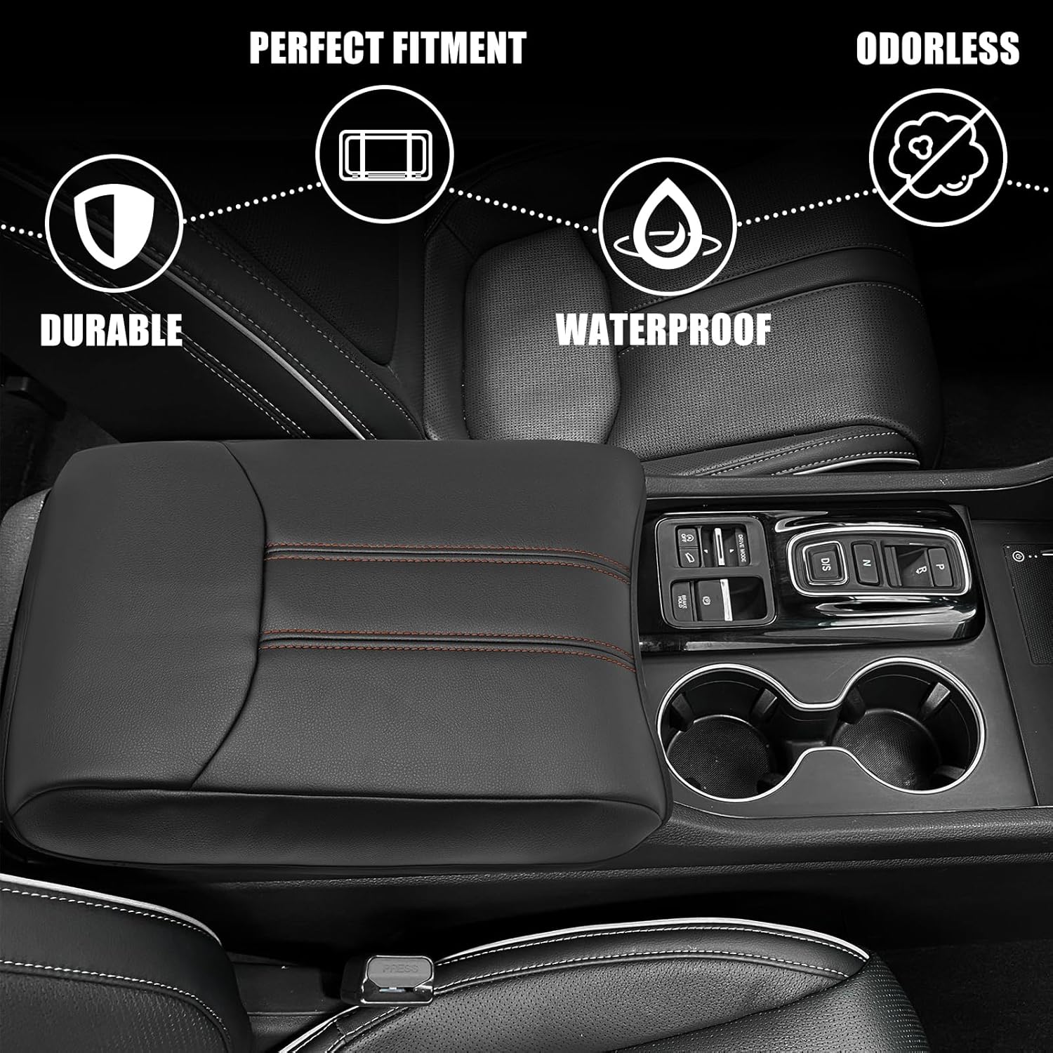 Muslogy Center Console Cover Compatible with Honda Pilot 2023 2024 2025, 2024-2026 Ridgeline/Passport Accessories Armrest Pad Lid Cushion Console Protector Vegan Leather Extra Soft(Black/Orange Trim)