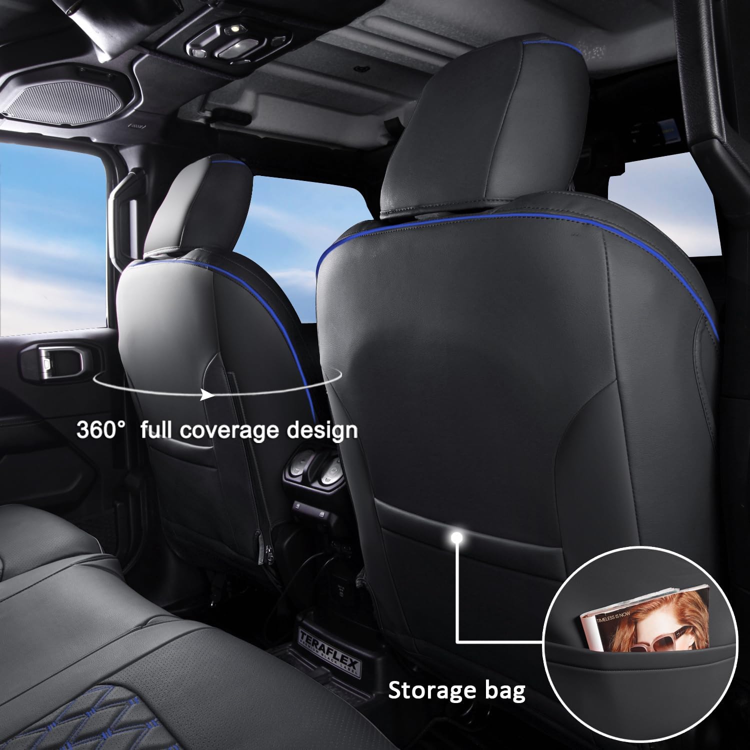 - 【CUSTOM FIT】 - A full set of seat covers customized according to the original car seat size 1:1, which will fit Wrangler JL 4 Door 2018 2019 2020 2021 2022 2023 2024 2025 (without Rear Cup Holder) like a glove.