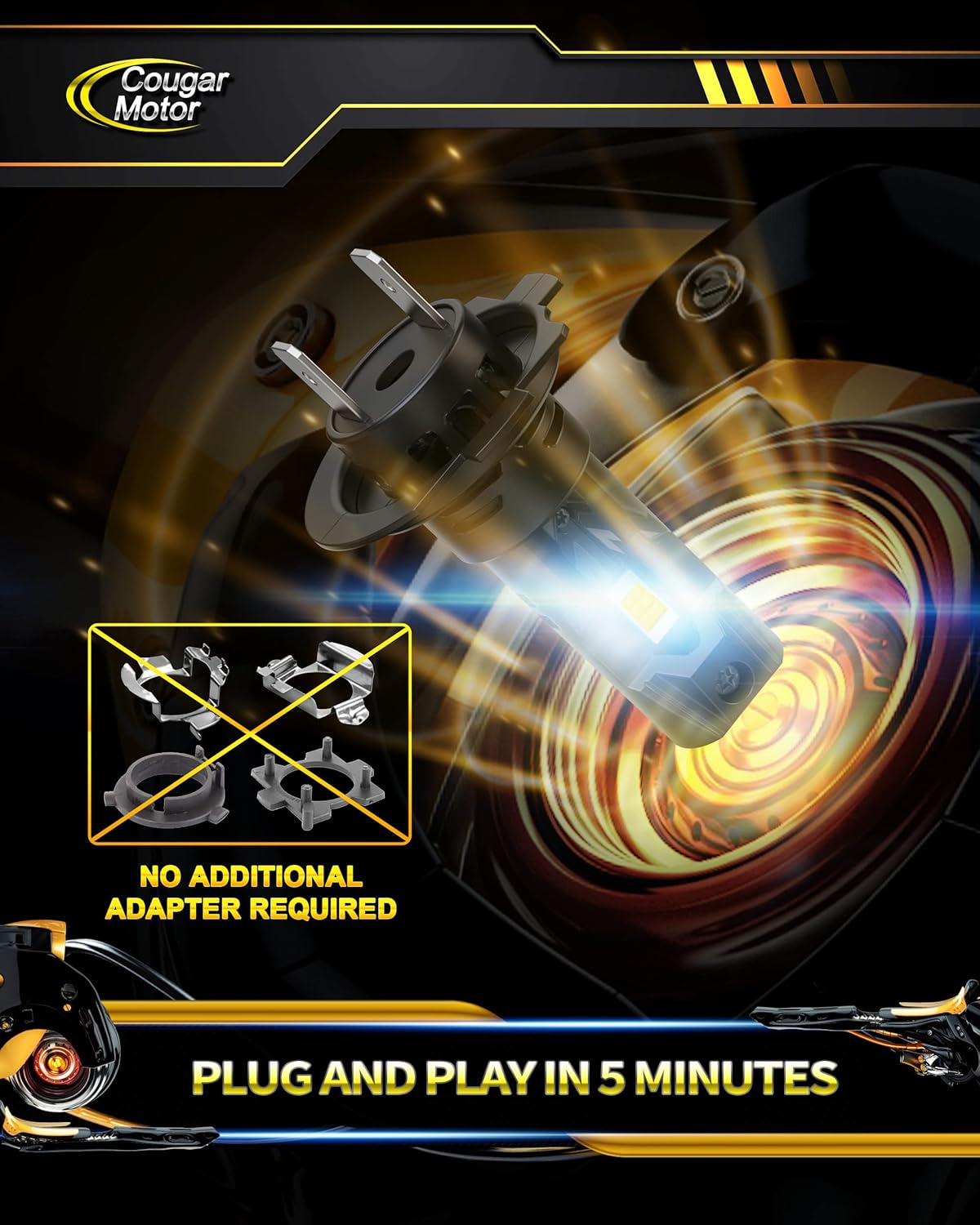 - NO ADAPTER REQUIRED: Cougar Motor H7 light bulbs feature a 1:1 design same as original bulbs and doesn't require any adapters for installation