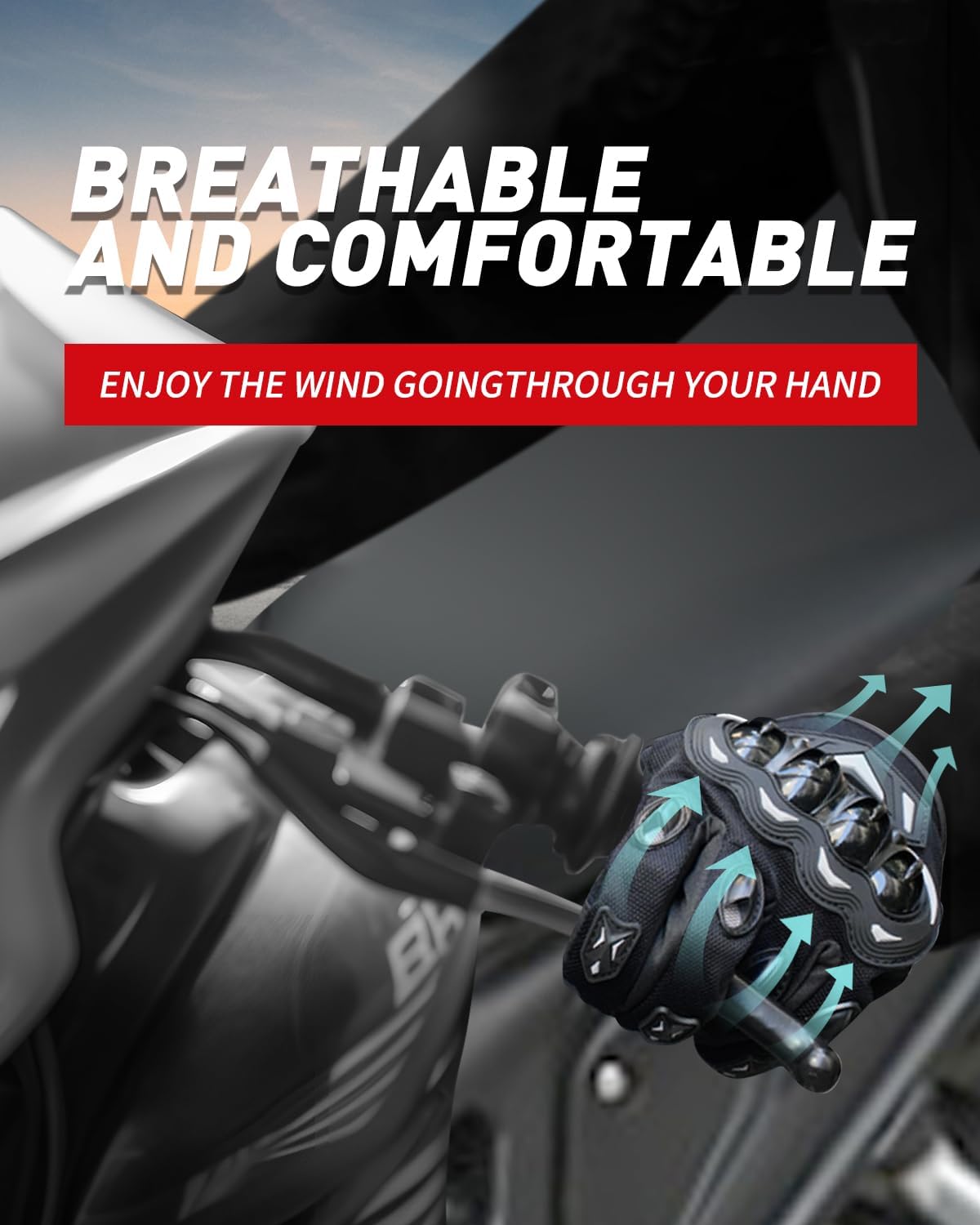 - 【Full Protection】: With hard knuckles and palm pads protection, the bike gloves protect your hands while fast racing. The padded on the palms and cartilage keep you safe even in a higher speed crash.