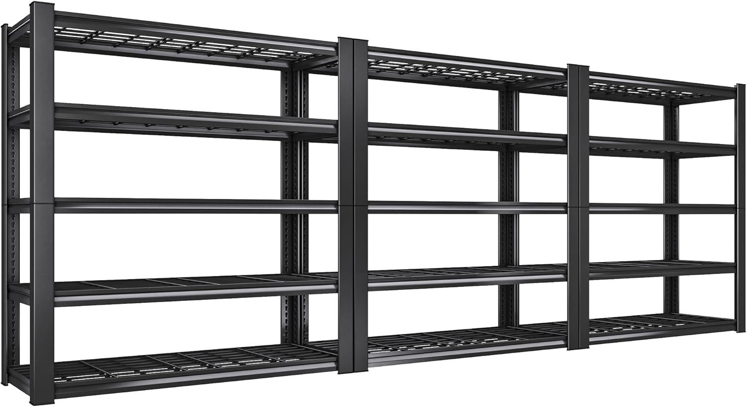 - 【3010LBS Extremely Sturdy】This garage shelving heavy duty has thickened legs. Every solid thickened metal shelf with extra stiffener can hold up to 602 lbs, a total of 3010 lbs bearing capacity gives you good storage experience. No matter how much weight you put on it, the garage storage shelves heavy duty will not wobble or shake