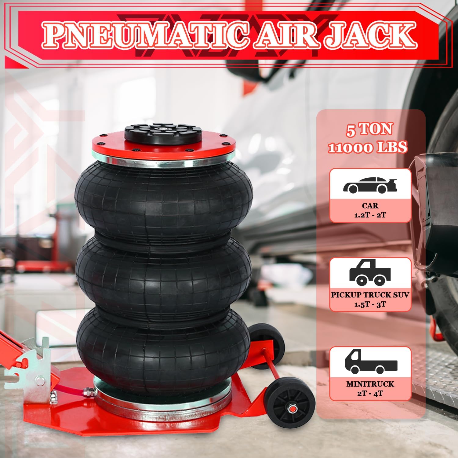 - WIDE APPLICATION - With an impressive 5 Ton/11000 lbs high load capacity, Tandagy air bag jack is designed to support a wide range of household and commercial models. From sedans to SUVs, the airbag jack lift is a versatile tool for any garage or professional setting. Its adaptability ensures you tackle multiple jobs with a single tool.