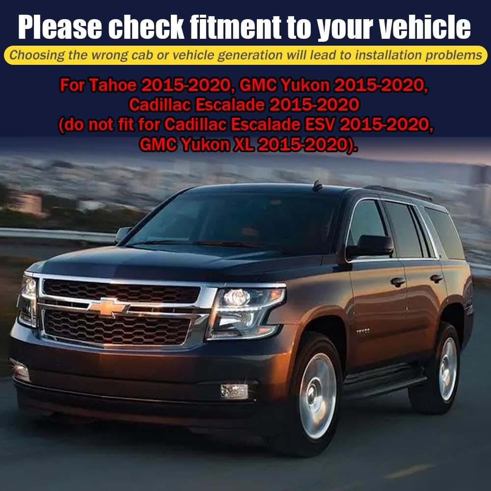 - Attention! side window wind deflectors & visors custom fits only for Tahoe 2015-2020, GMC Yukon 2015-2020, Cadillac Escalade 2015-2020 (do not fit for Cadillac Escalade ESV 2015-2020, GMC Yukon XL 2015-2020).