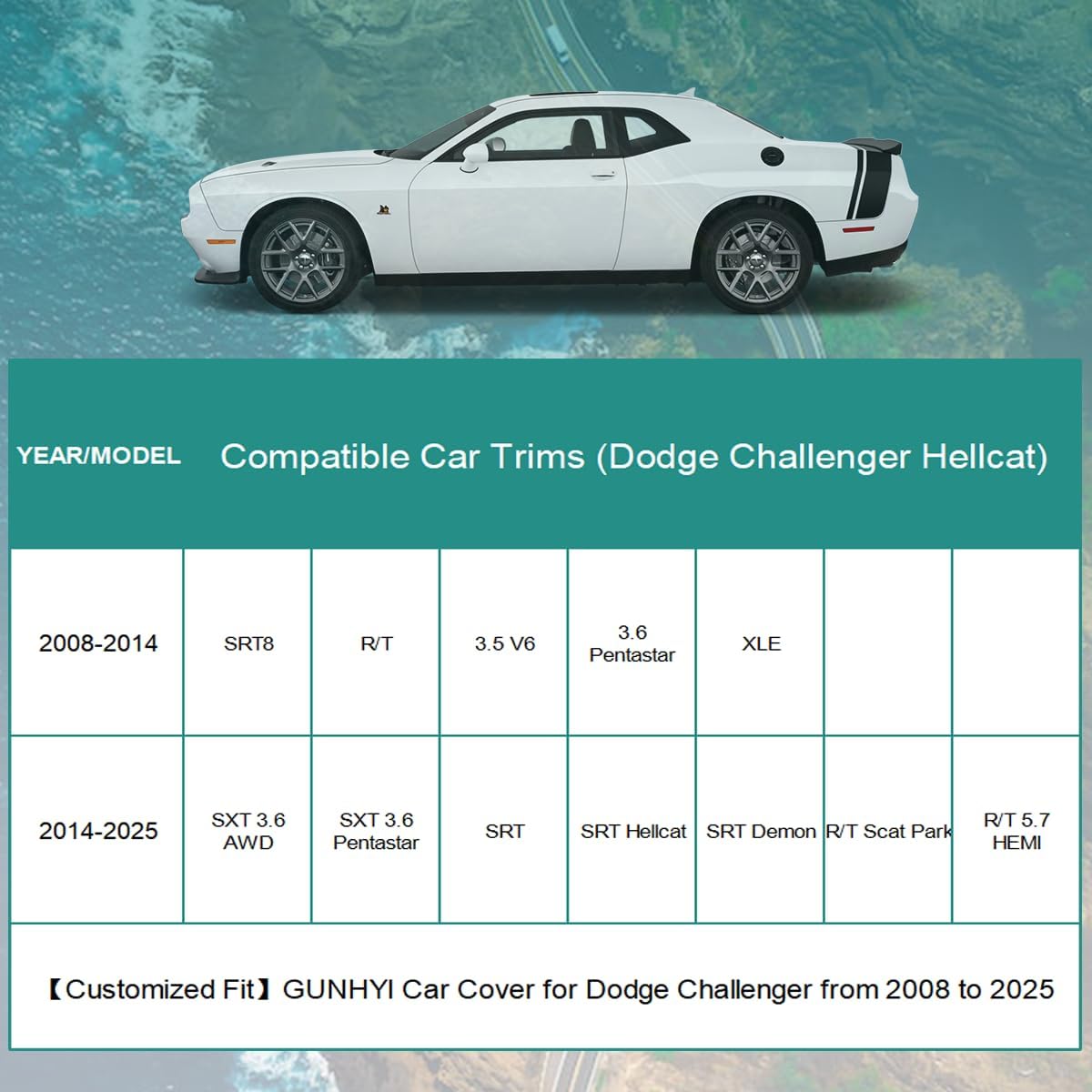 - 【Compatible with】This Full Car Cover Custom fit for Dodge Challenger Hellcat from 2008 to 2025. Comes with a microfiber towel that you can use to clean your car, because if there is sand on the surface of the car before use, it may damage the paint.