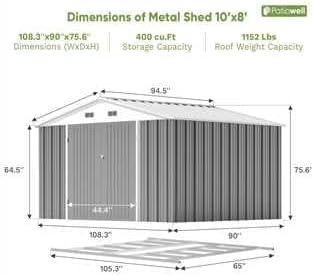 - Before Assembly: All parts of the metal outdoor storage shed are pre-cut and pre-drilled with marker numbers. We recommend assembling on a level floor and not tightening all screws during the assembly process until the entire project is complete. The plastic protective film is included and can be peeled off as needed, which will not affect your subsequent use. 2-3 people working on the installation at the same time will help you finish faster.