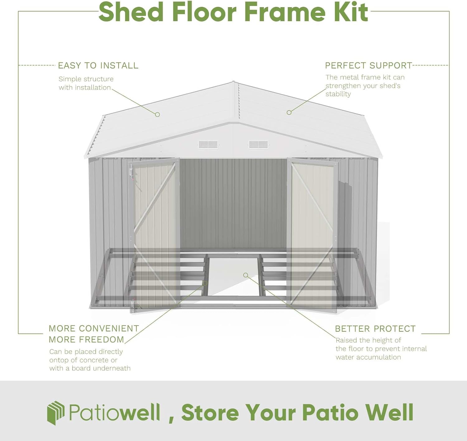 - Stable Floor Frame: The frame can increase the stability of the storage shed and isolate the flooring from the ground, preventing the flooring from being damaged by moisture.