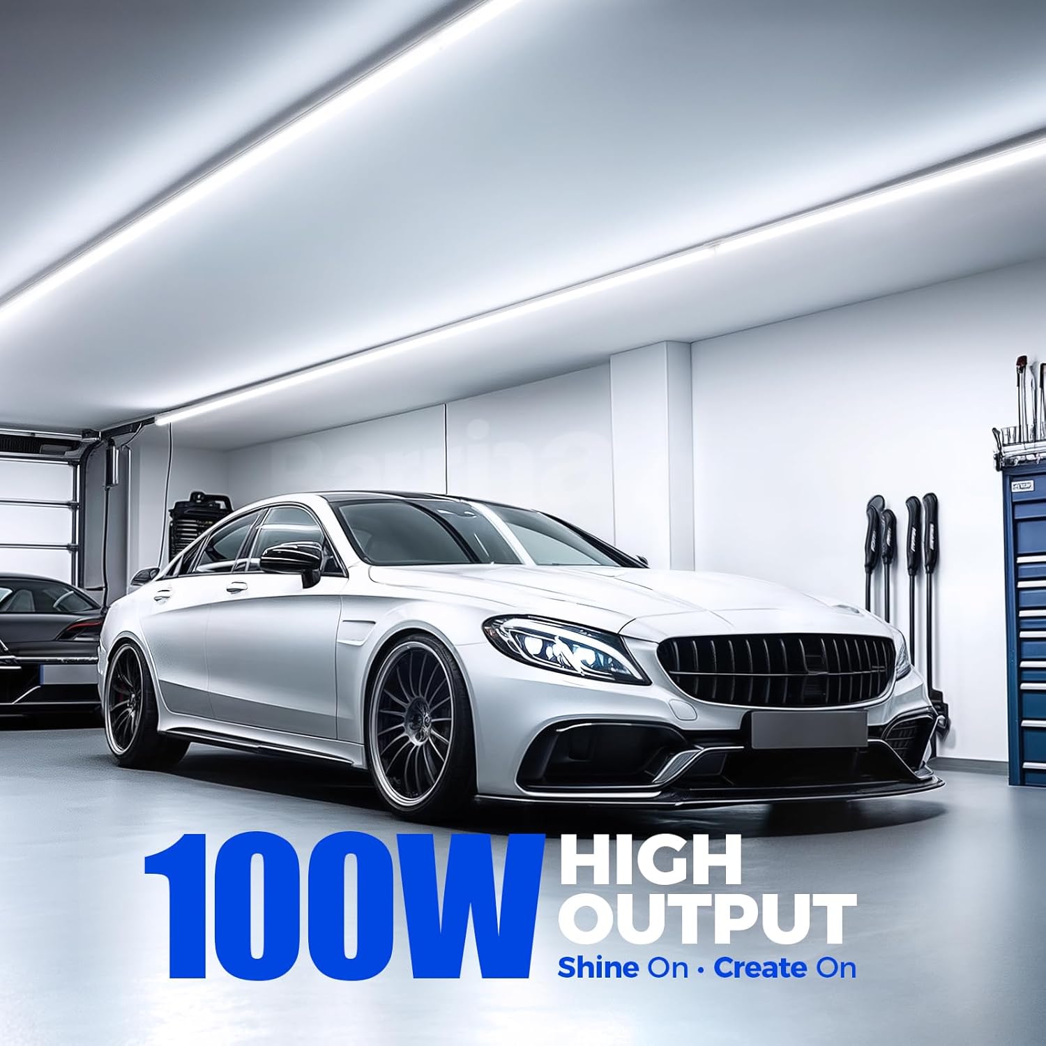 - 6500K Super Bright White: Barrina Led Shop Light upgraded to a higher requirement of 100W and 15,000LM high output. The garage light supports 6500K , which is closer to natural light and restore more realistic colors, providing professional lighting. Please note that we have a brand new upgrade, if you need to connect new and old products, make sure to use the new male-female connector cables. The second generation is safer, preventing accidental electrical connections