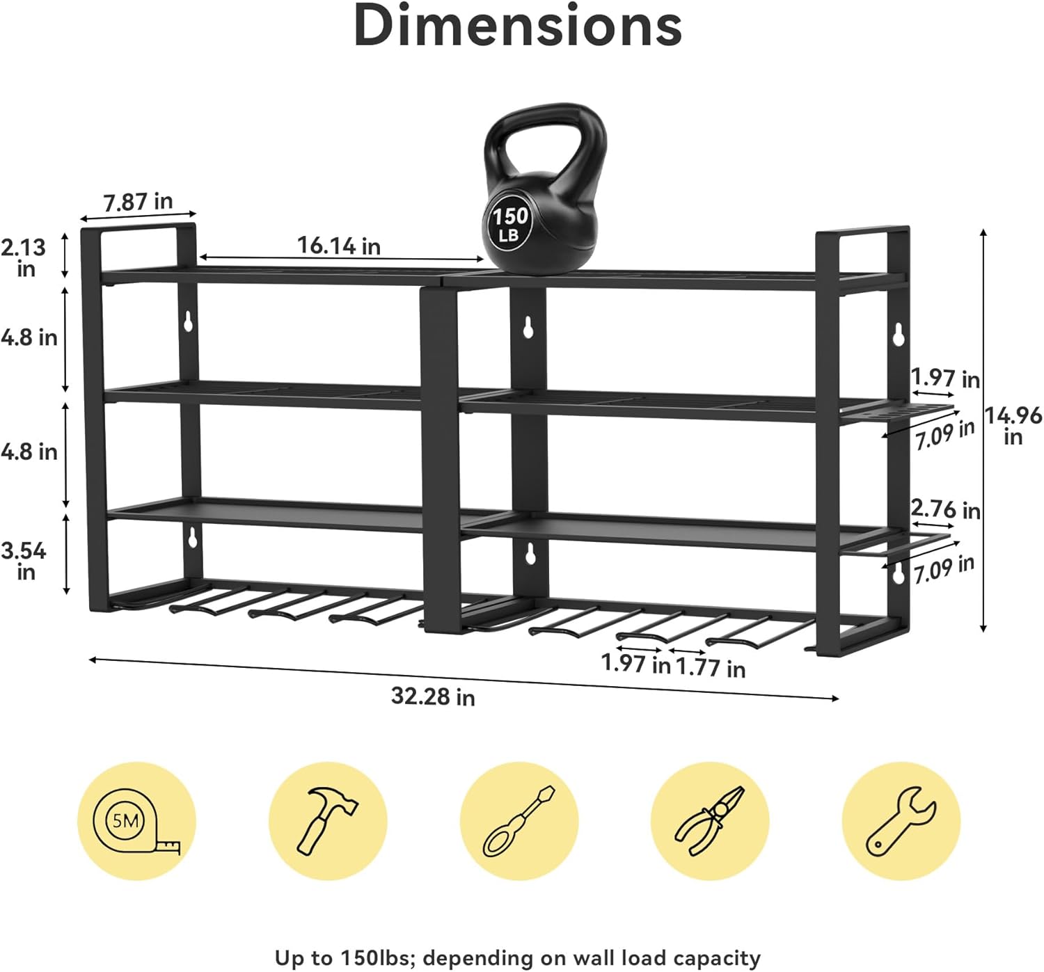 - Heavy Duty & Durable:This 4-layer tool organizers and storage is made of thickened heavy-duty metal, is not easy to rust, stable and durable, strong weight-bearing capacity. Expansion bolts further providing assurance against shelf breakage or the organizer falling from the wall