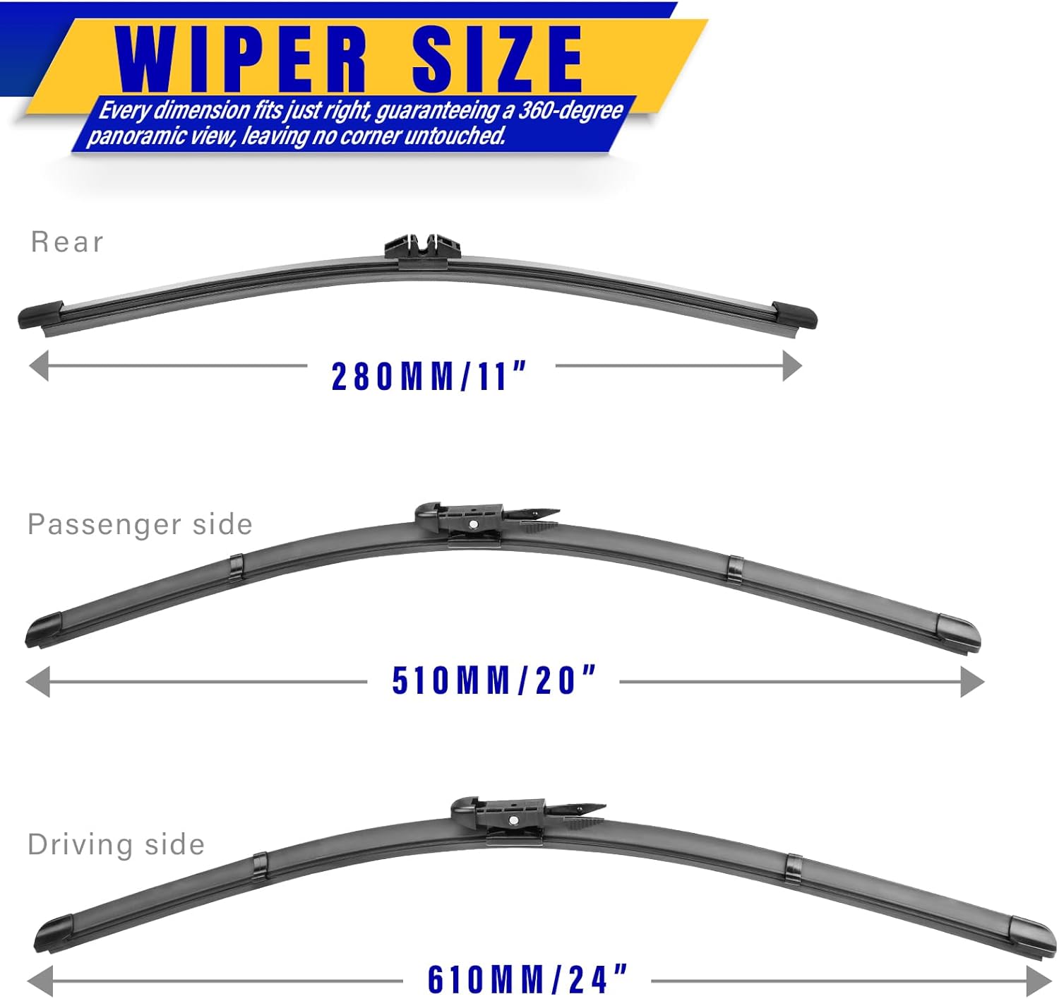 - 【WORRY-FREE SHOPPING】 3Pcs wiper blades 24"+20"+11" and Instruction Manual. One Year warranty! Refund or return anytime in one year, Long life, smooth engagement.