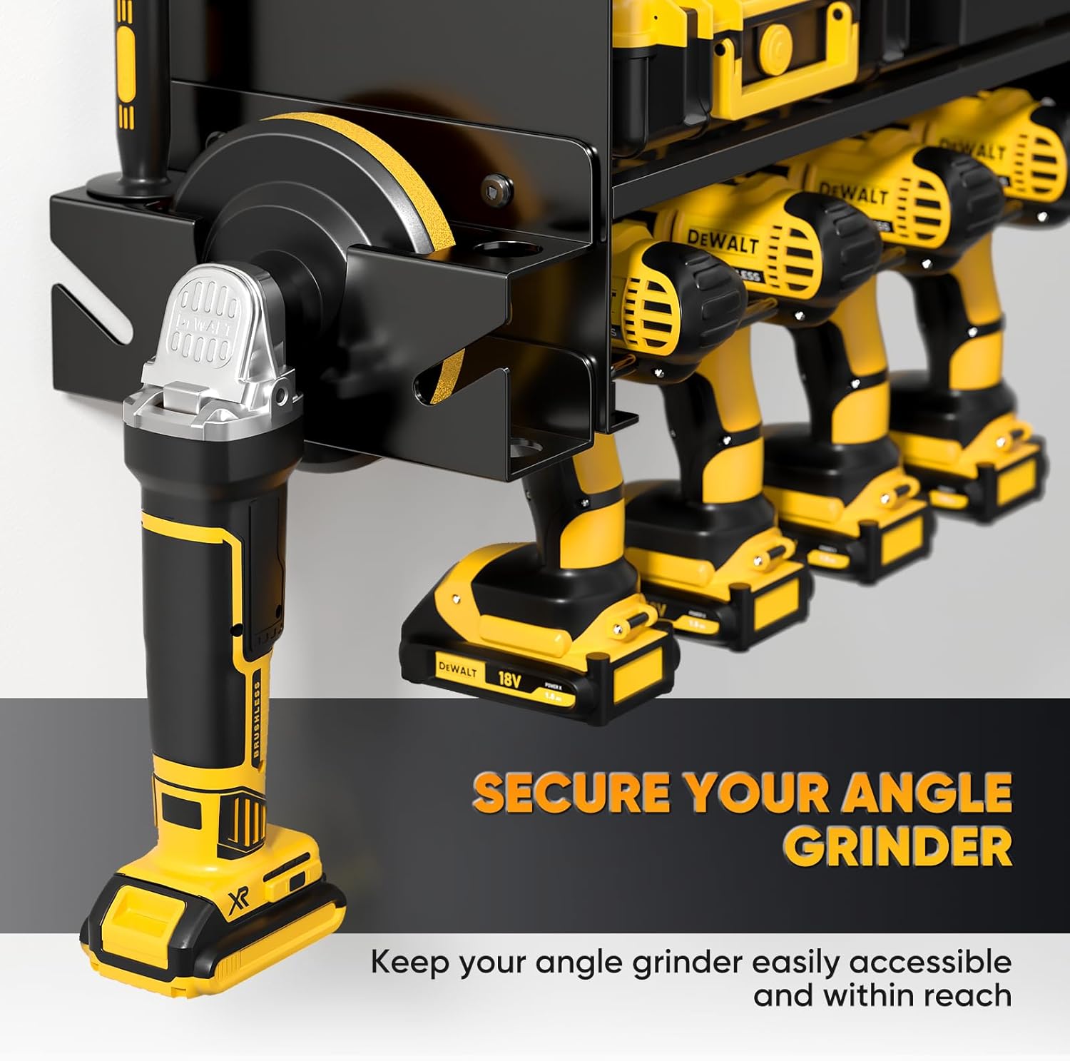 - High-Quality Metal Bearing Capacity of 300 Lbs:Our power tool organizer wall mount with charging station is constructed from high-quality and heavy-duty metal materials. The industrial metal has undergone extensive load-bearing tests, allowing it to support up to 330 lbs. You no longer need to worry about the shelf breaking or falling off the wall. Our power tool holders can accommodate power tools of any weight.