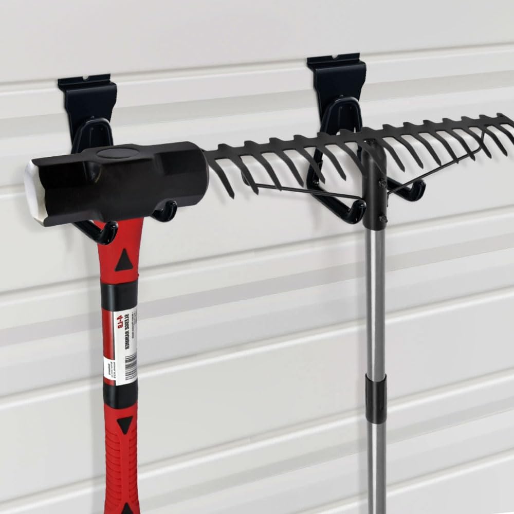 - 【Space Saver】 The double hook design of the garage slatwall hooks makes it strong enough to hold various tools very sturdily, will help you to get more efficient storage space, is a must have for organizing home, garage, garden, shop, basement or warehouse.