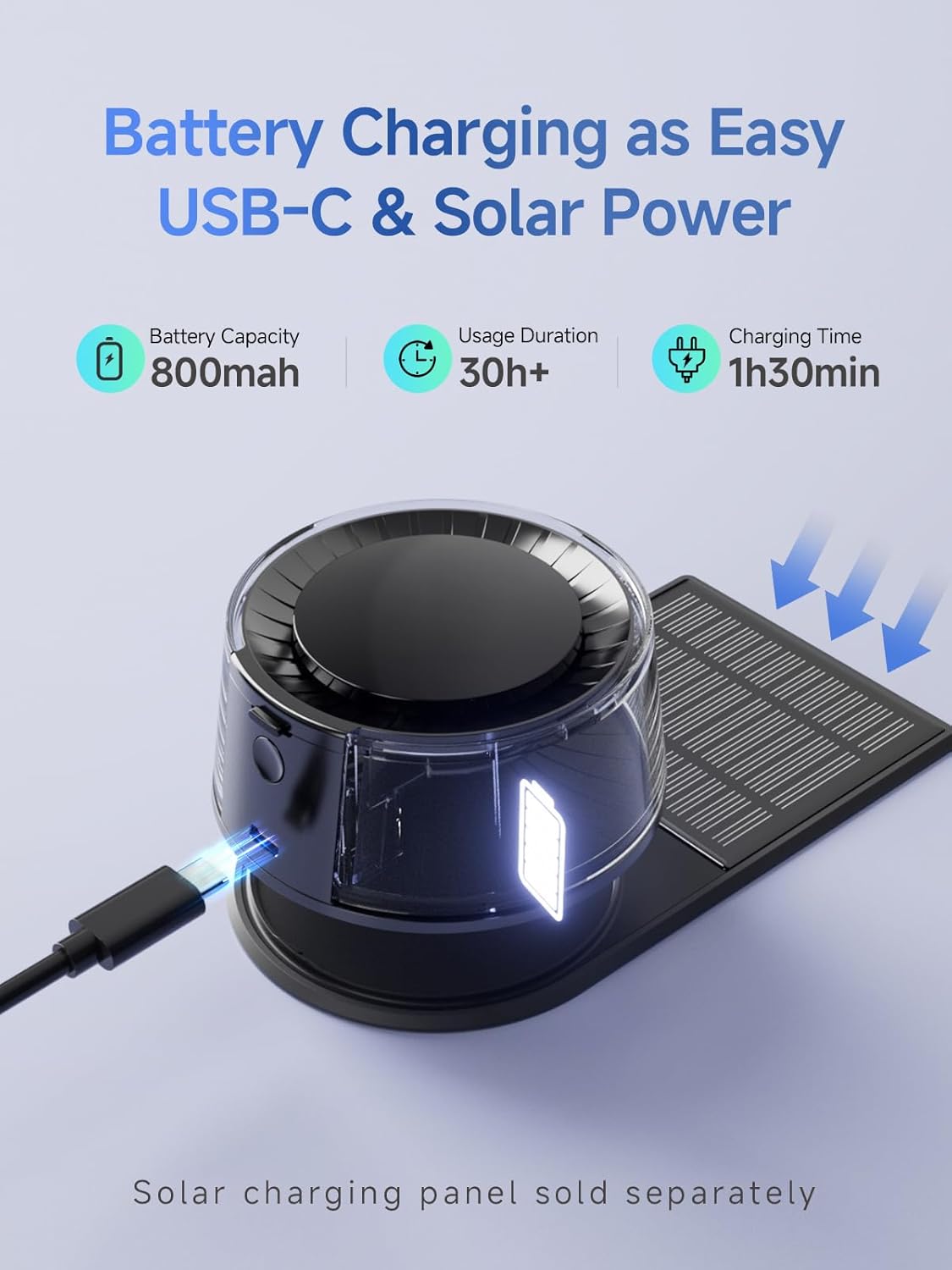 - Power Source : Battery & Solar Powered