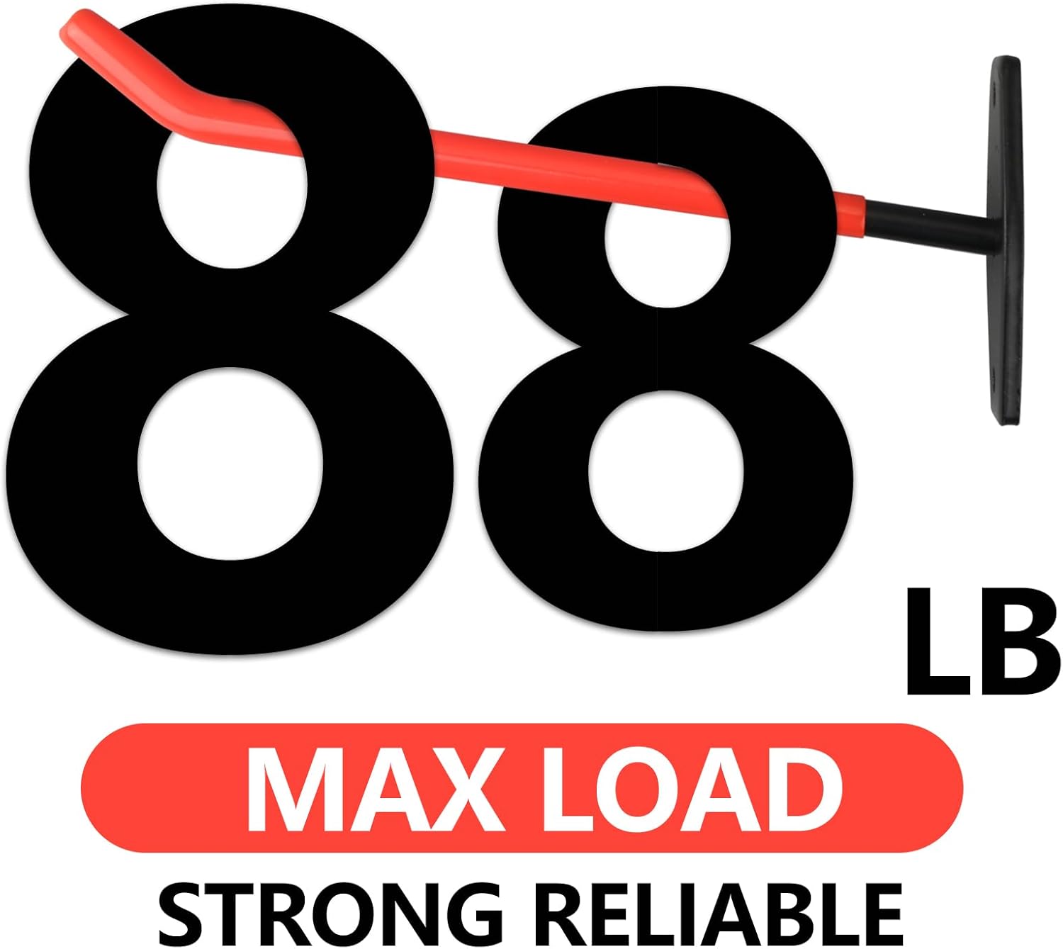 - 【HIGH LOAD CAPACITY】: After rigorous testing, our garage hooks for hanging can safely load capacity 88 lbs﹙40 kg﹚ suitable for hanging most cars, large motorcycle tires, bicycles, gardening supplies, and other items.