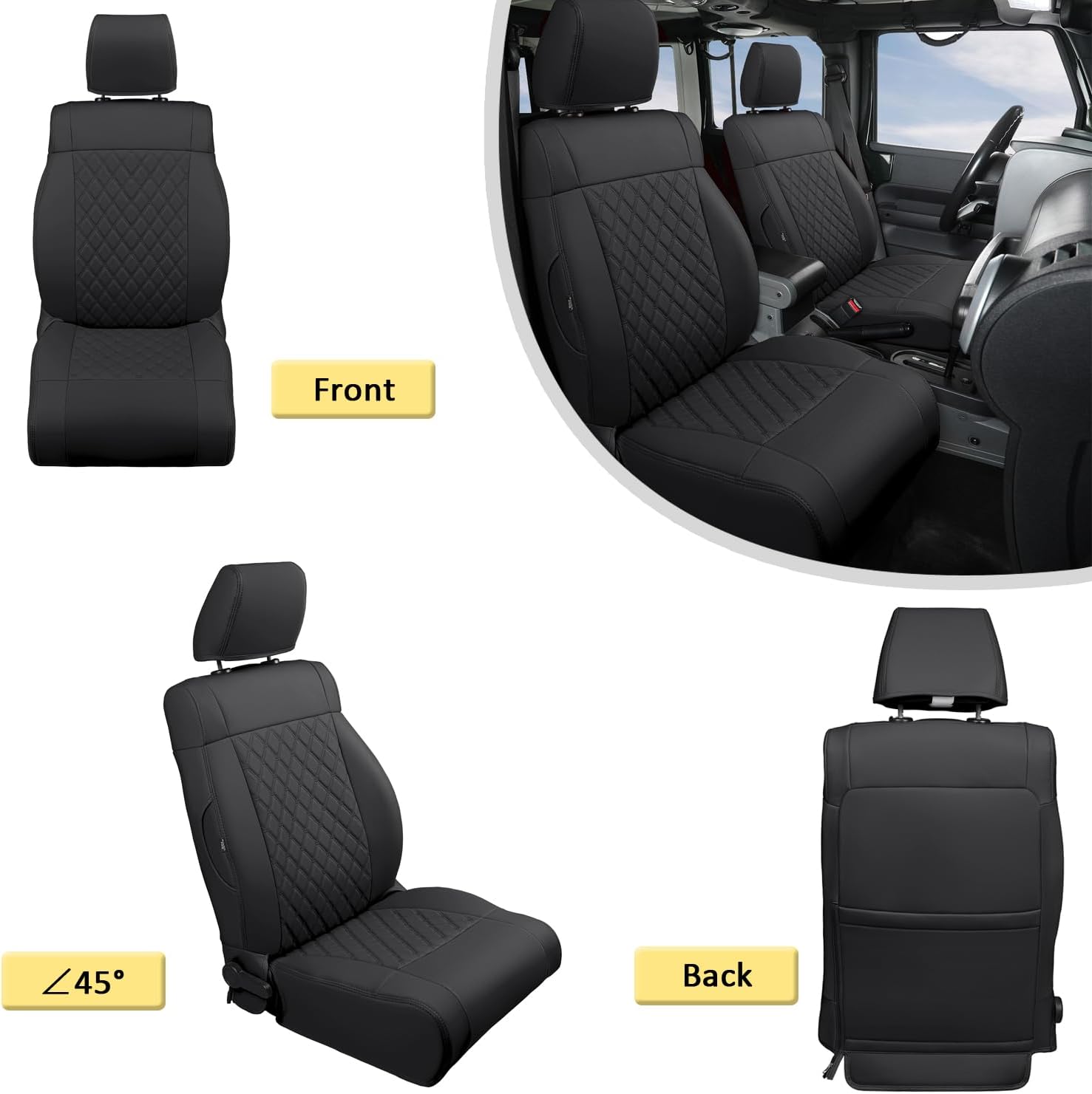 GIANT PANDA Customized Full Set Car Seat Covers for Jeep Wrangler 4 Door JK Unlimited Sahara Sport Rubicon X 2008 2009 2010, Faux Leather - (Black)