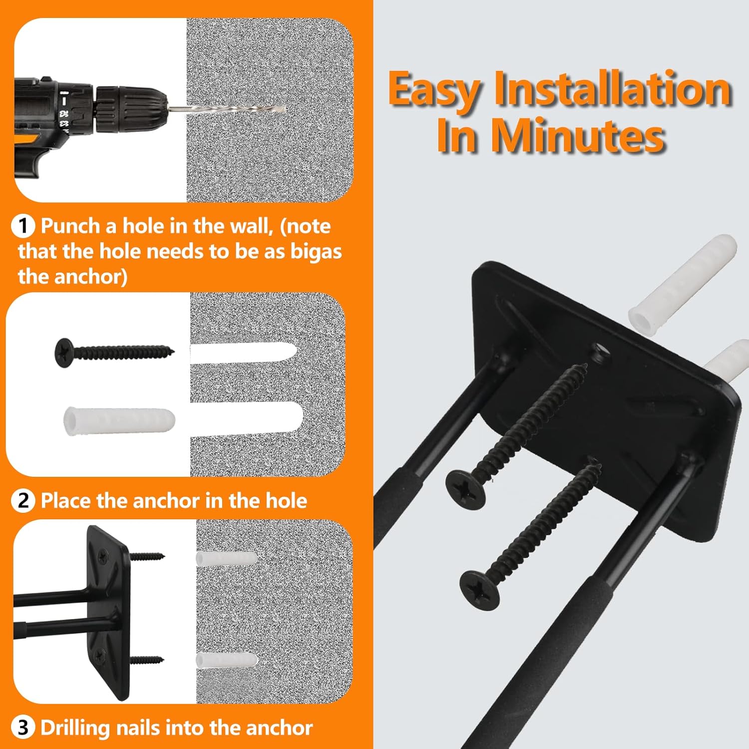 - 【Heavy Duty Capacity】The folding chair rack is made from industrial-grade steel, supporting up to 150 lbs per pair and 300 lbs in total. These garage hooks provide a sturdy and secure solution for organizing chairs, ladders, and heavy-duty tools.