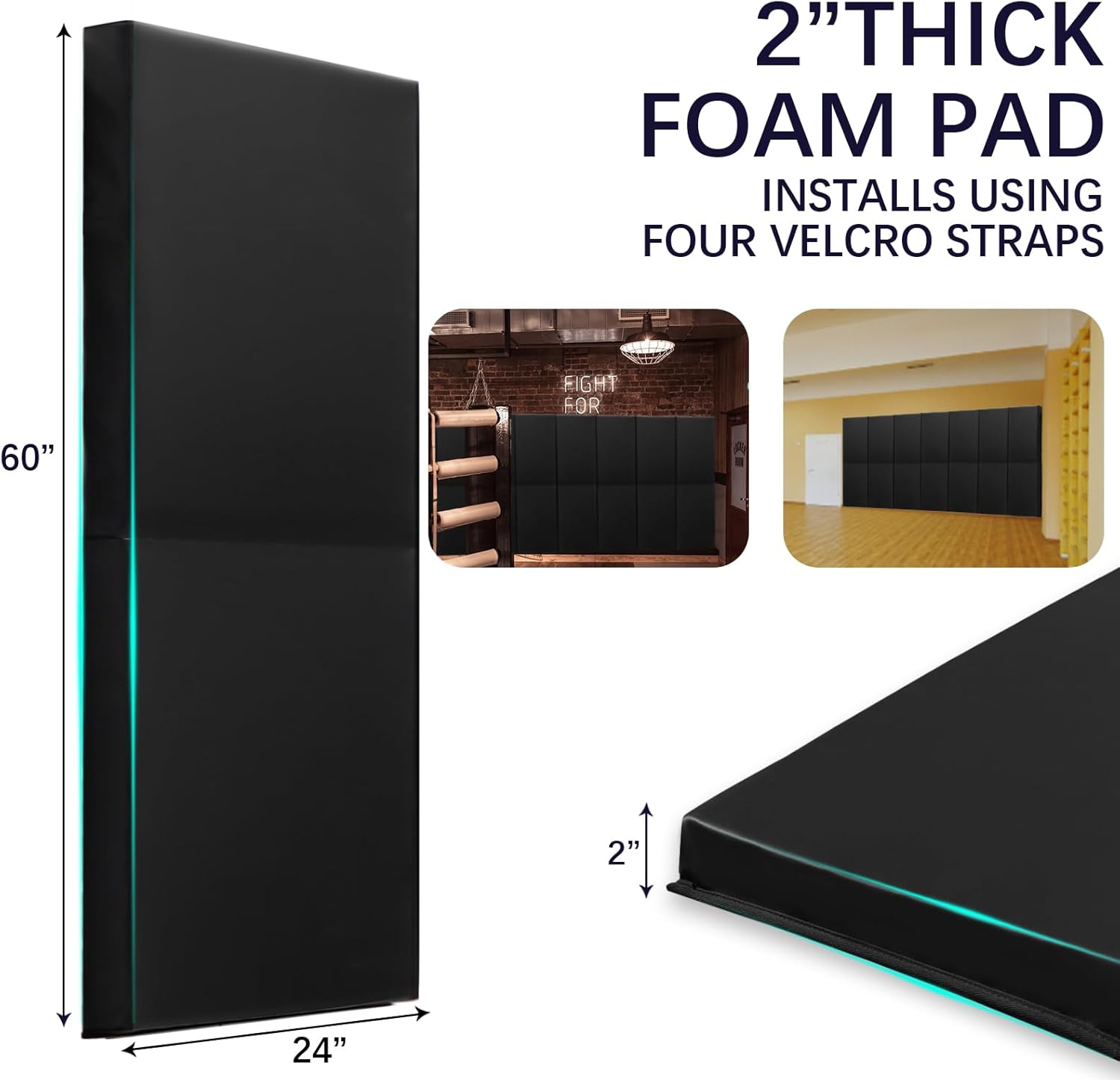 - 💯【Extensive coverage and value】 : Each package includes one smooth black sports protective wall pads, providing a total coverage area of 10 square feet. With pad sizes of 60"x24"x2" they can accommodate various wall sizes, ensuring comprehensive protection.