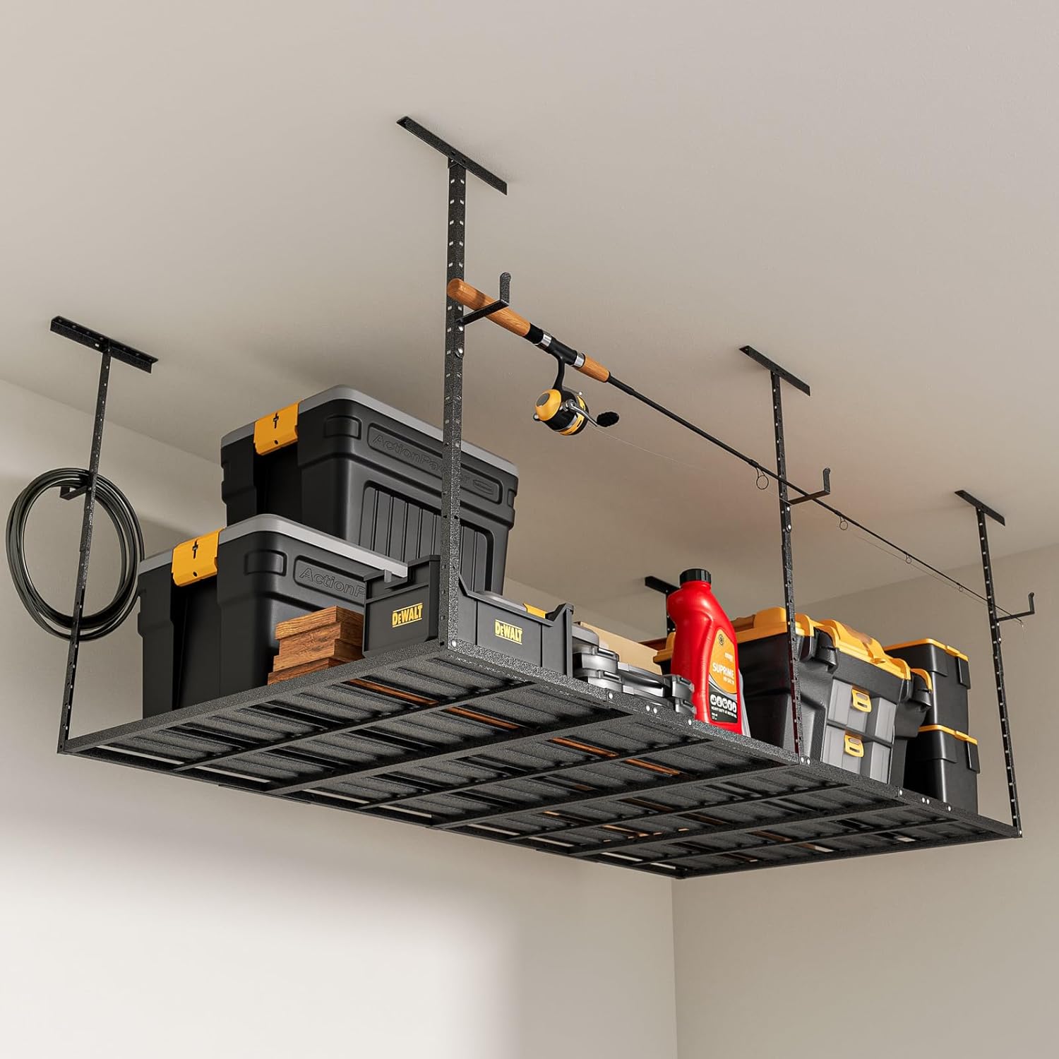 Heavy-Duty 4x8 Overhead Garage Storage Rack – Holds 20% More Weight, 800lbs Capacity, Adjustable Height, 4 Hooks Included for Extra Storage