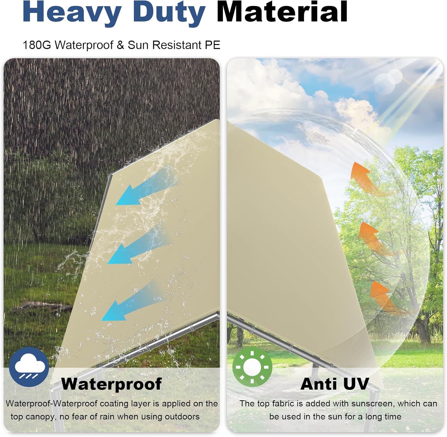 10x20ft Portable Car Tent Garage with UV Resistant Canopy, Easy to Assemble Portable Garage, Stable Carport for Car, Bike, Camp, Outdoor Storage (Beige)
