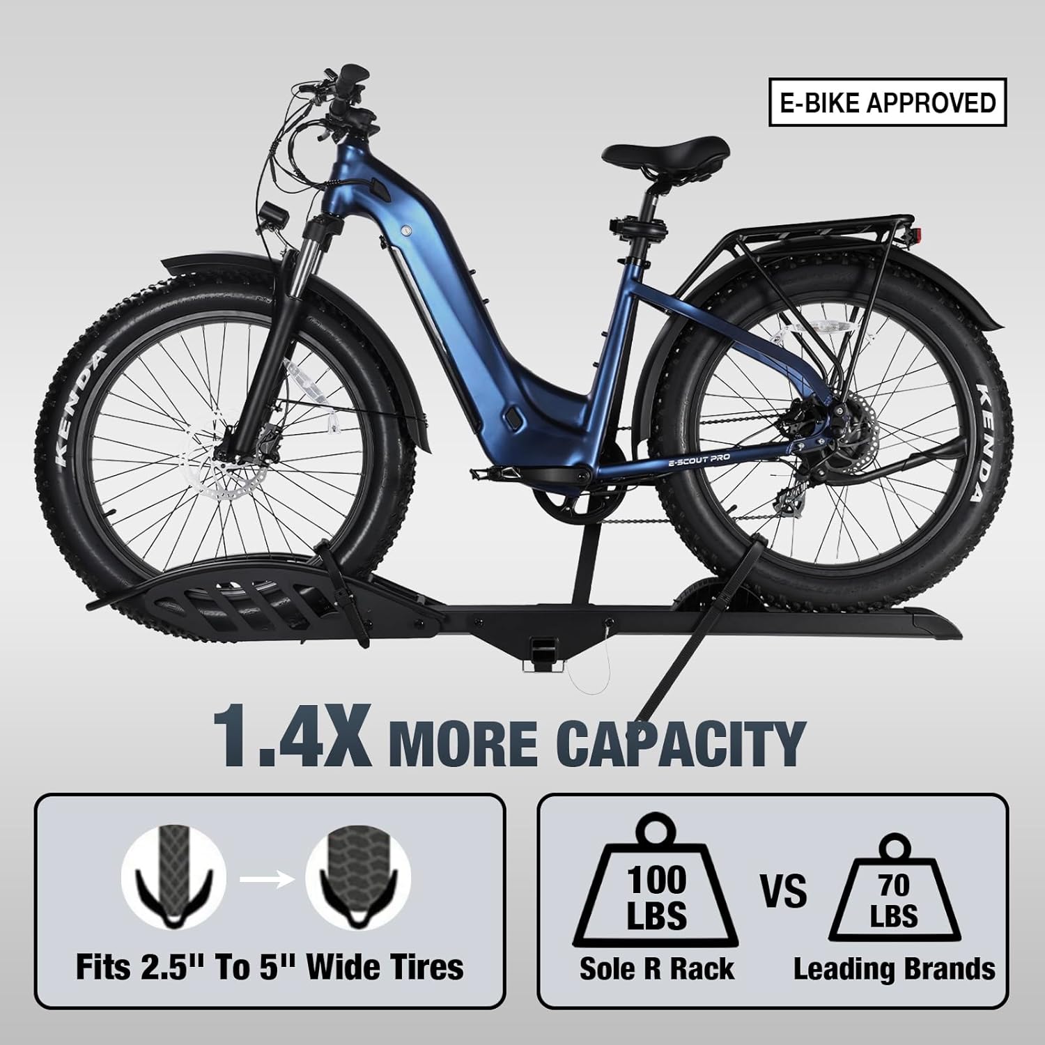 Sole R 1-Bike Rack, Hitch-Mount Platform E-Bike Rack with Ramp, 100 lbs Capacity, Fits Car, SUV, Truck, RV, Van with 2-Inch Receiver and Up to 5-Inch Fat Tires Bicycle