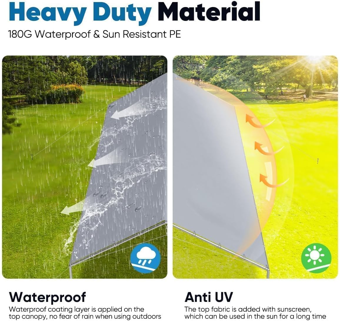 - 【Extra-thick Polyethylene Fabric】:Reinforced PE material is Tear-proof, Waterproof and Anti-UV. Industrial grade Cover Fabric for long lasting durability and protection guaranteed could extended service life of the carport canopy.
