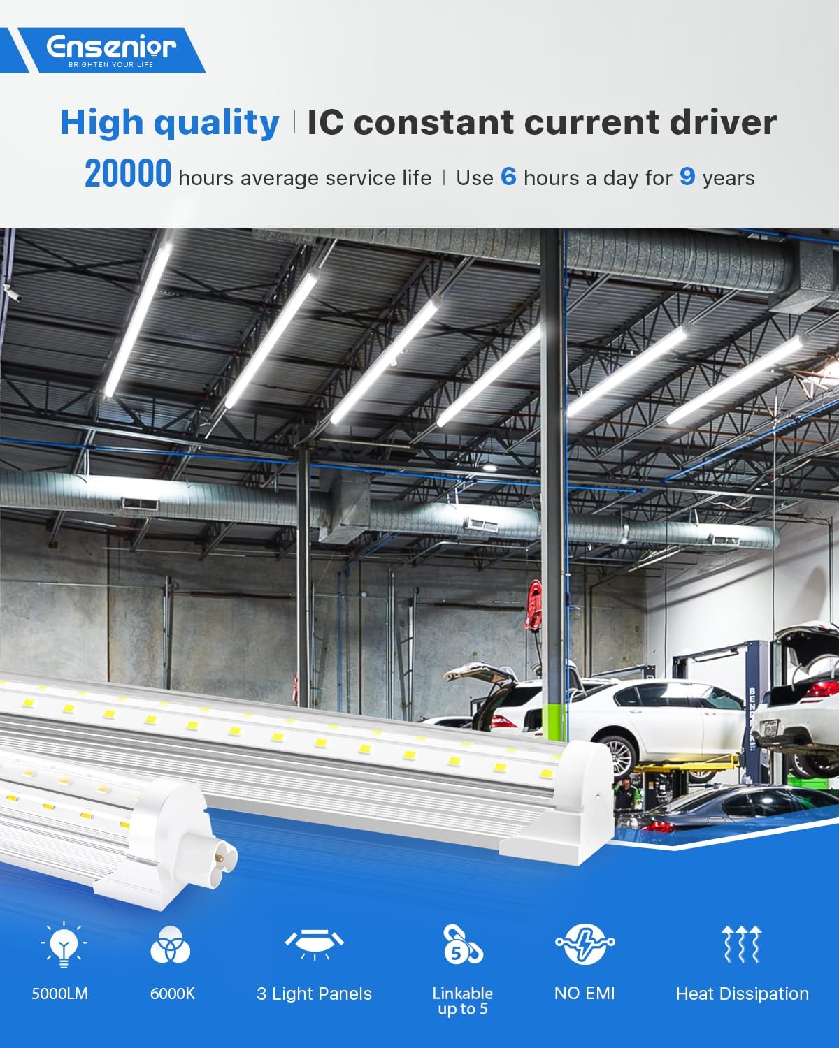 - 💡[High Security & Reliability] Our 8ft led shop lights are ETL & FCC certified. The use of UL wire and connector makes the light more durable. No radiation interference. You are free to use your wireless devices and remote garage door. More material input in the structure and V0 fire-proof light shade give you a top security experience.