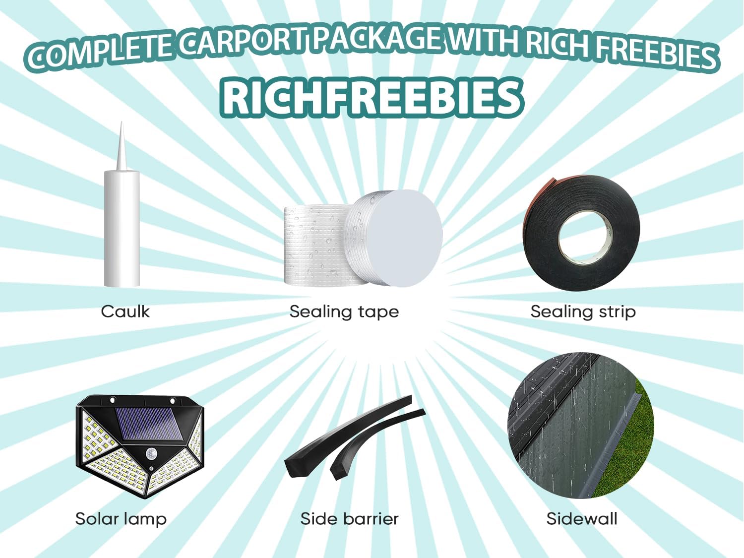 - Free Accessories for Complete Protection: This 12x20 metal carport comes with a set of valuable free accessories, including durable PE material side walls for extra enclosure and protection from the elements. Also included are waterproof tape, sealing caulk, and waterproof sealing strips—all designed to prevent leaks and ensure your car port stays dry and well-protected.
