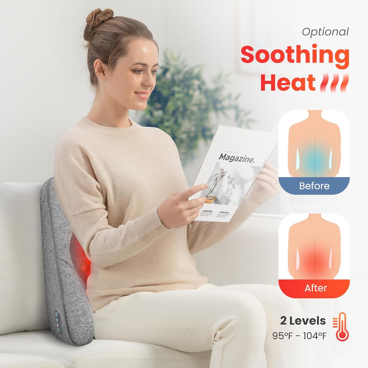 - 【Back Support for Chair with Massage Function】The back pillows for sitting in chair is equipped with 4 gently kneading shiatsu massage nodes that can rotate bi-directionally to knead and massage, offering a soothing massage experience. In addition, the massage function of lumbar support presets 15 mins timer, which can effectively help you control time.
