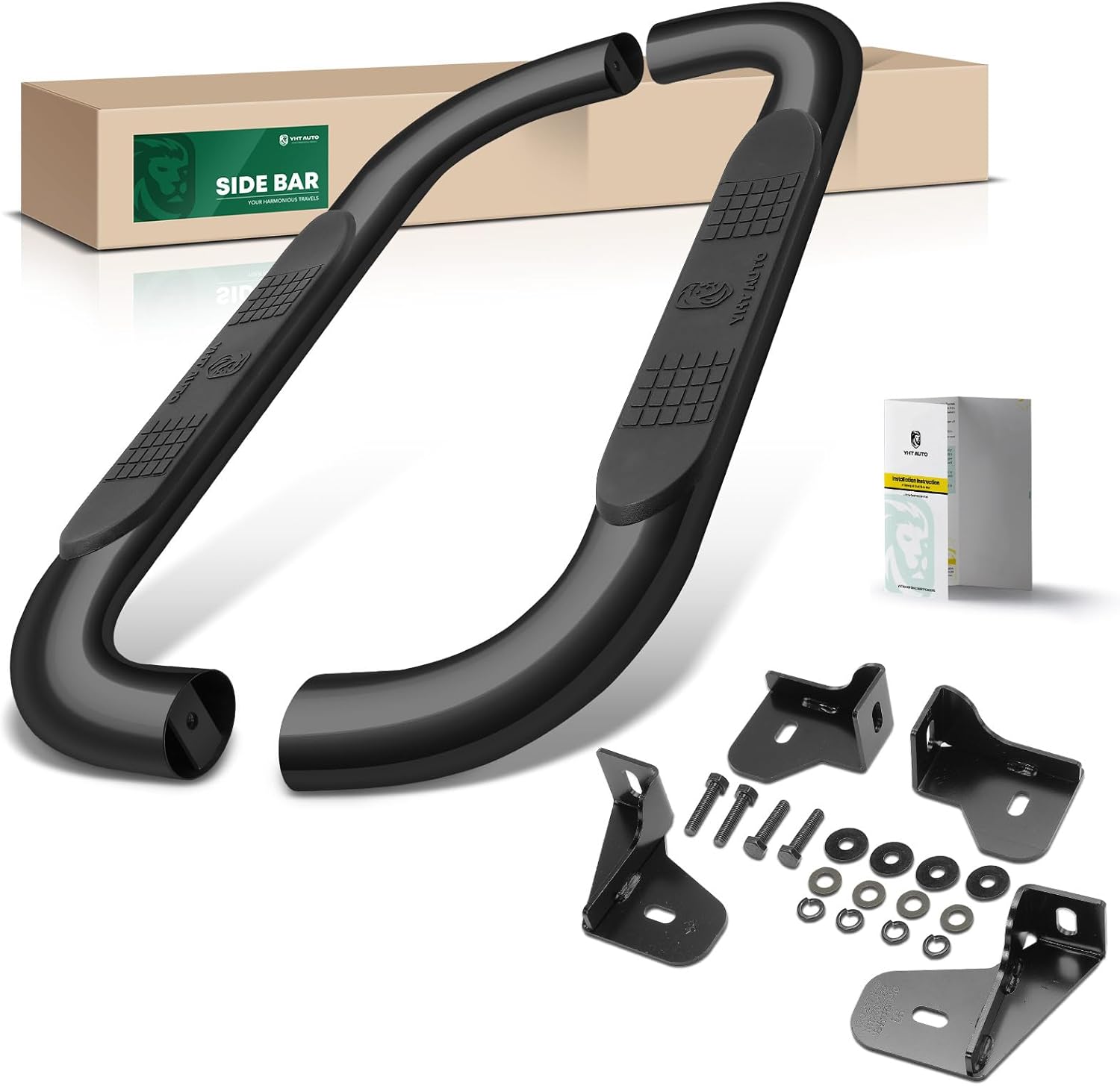 - Frame Mount: Running boards come with all necessary brackets, bolts, and nuts for installation, eliminating extra drilling if your vehicle has preexisting mounting holes. The packaging features five layers of reinforcement to prevent deformation
