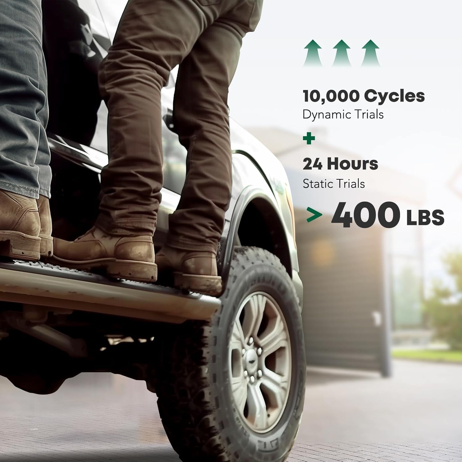 - Rocker Panel Mount: Running boards come with all necessary brackets, bolts, and nuts for installation, eliminating extra drilling if your vehicle has preexisting mounting holes. The packaging features five layers of reinforcement to prevent deformation