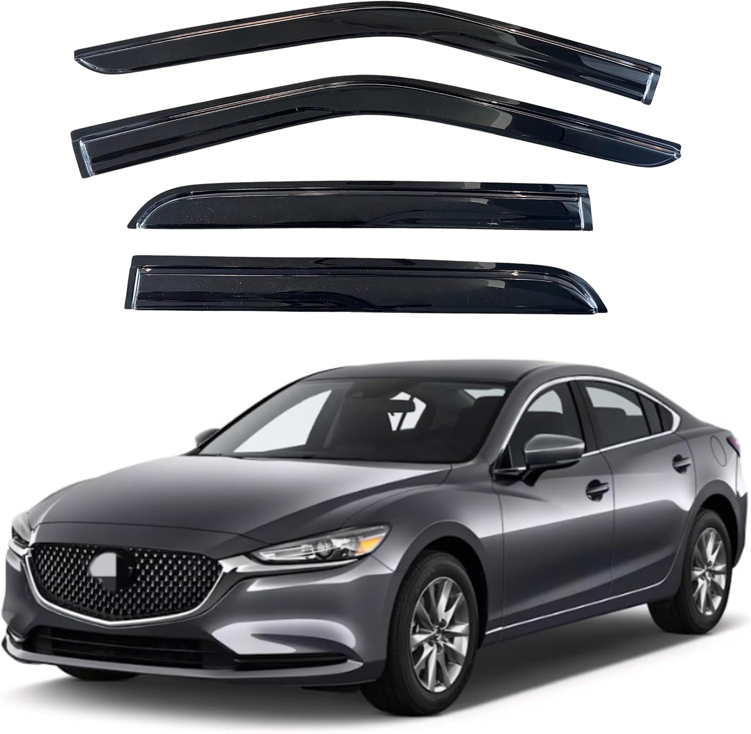 - 【Perfect Fit】KPY window visors rain guards vent deflectors compatible with Mazda 6 2014 2015 2016 2017 2018 2019 2020 2021 (Mugen Style)