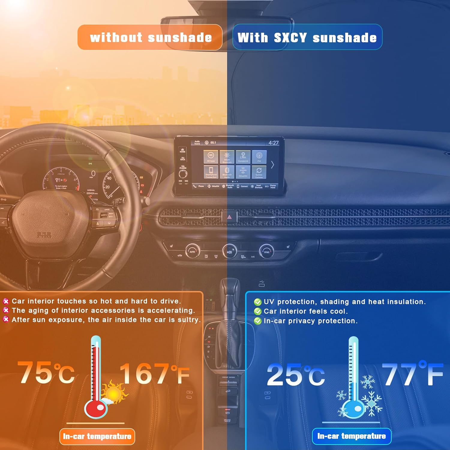 - 1.Custom Fit: this windshield sun shade is custom designed for 2023 2024 2025 Honda HRV sunshade for 2023 2024 2025 Honda HRV LX, Sport, EX-L accessories front window.You don’t need to worry about oversize or too small,consider it if you need a car protector cover that protects your car interior from sunburn.