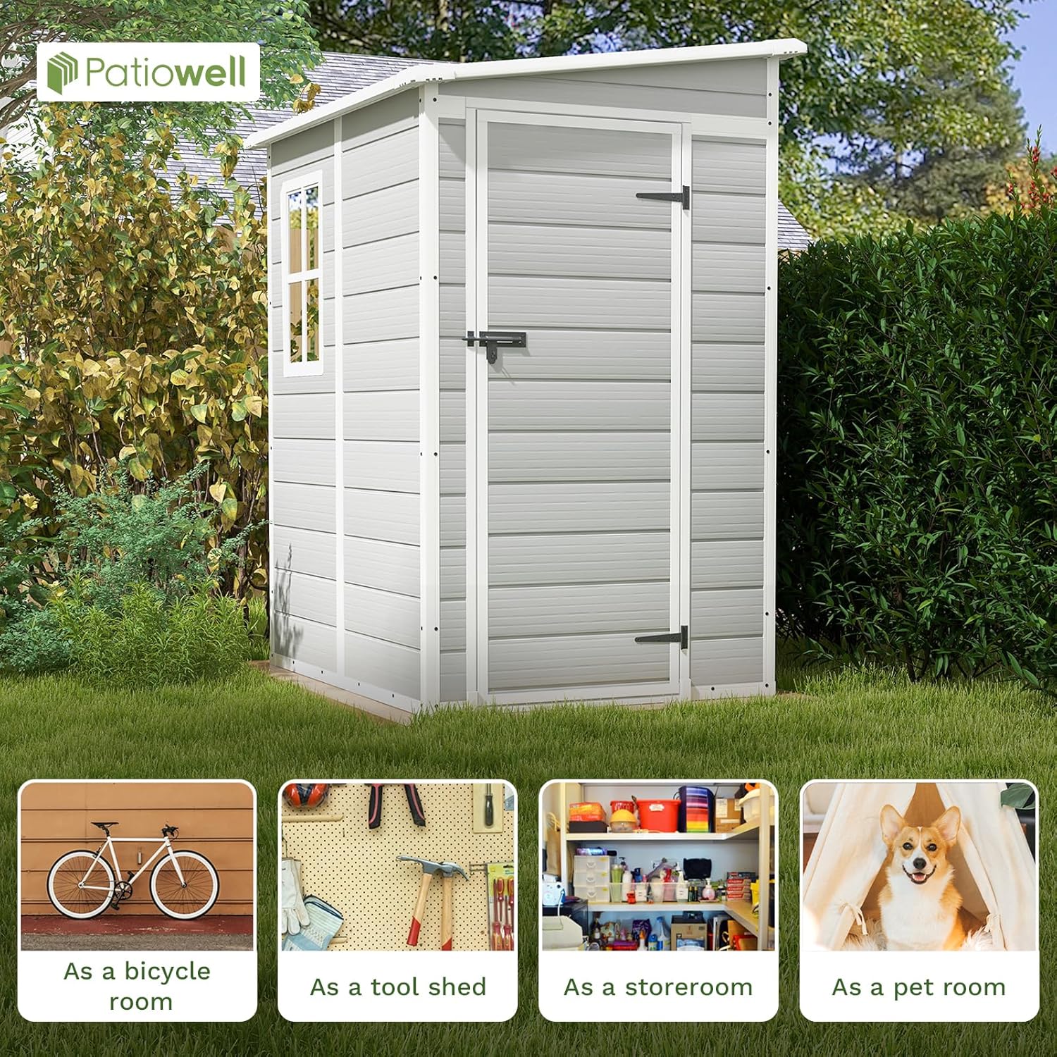 - Decorate Your Yard: Featuring a neutral color palette and a sleek, modern design, this storage shed seamlessly blends into any outdoor setting. Whether placed in your backyard, patio, or garden, it enhances the aesthetic appeal while serving its practical purpose.