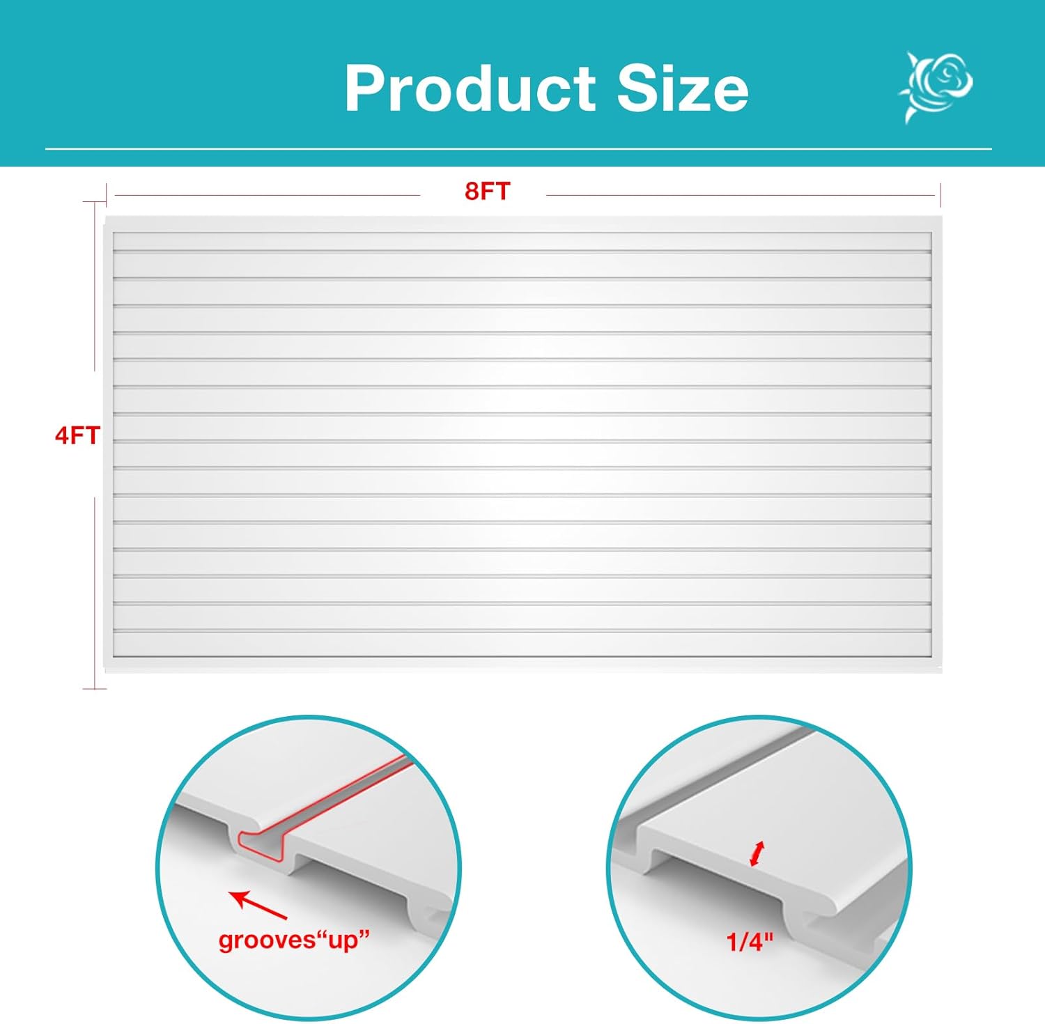 NeatiEase Slatwall Panel Wall Storage Systems, 4 x 8ft Slat Wall Paneling Garage Wall Organizer, Heavy Duty Wall Mounted PVC Wall Rack (White)